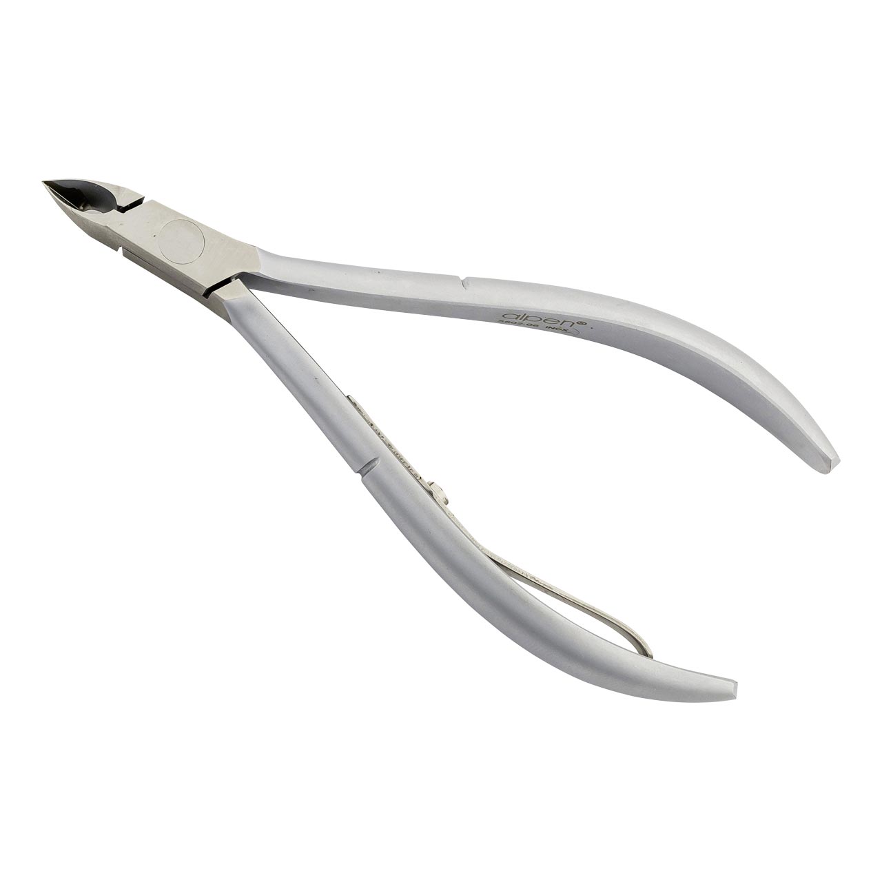 Nagelhautzange von ALPEN, rostfreier Edelstahl AISI 420, mattiert, mit Feder. Die Feder öffnet die Zange nach dem Schneiden automatisch, sie wird dafür vor Gebrauch nach oben gedreht. Schnittlänge 6 mm. Zum sicheren Entfernen von Nagelhaut, auch in feinsten Nagelecken.