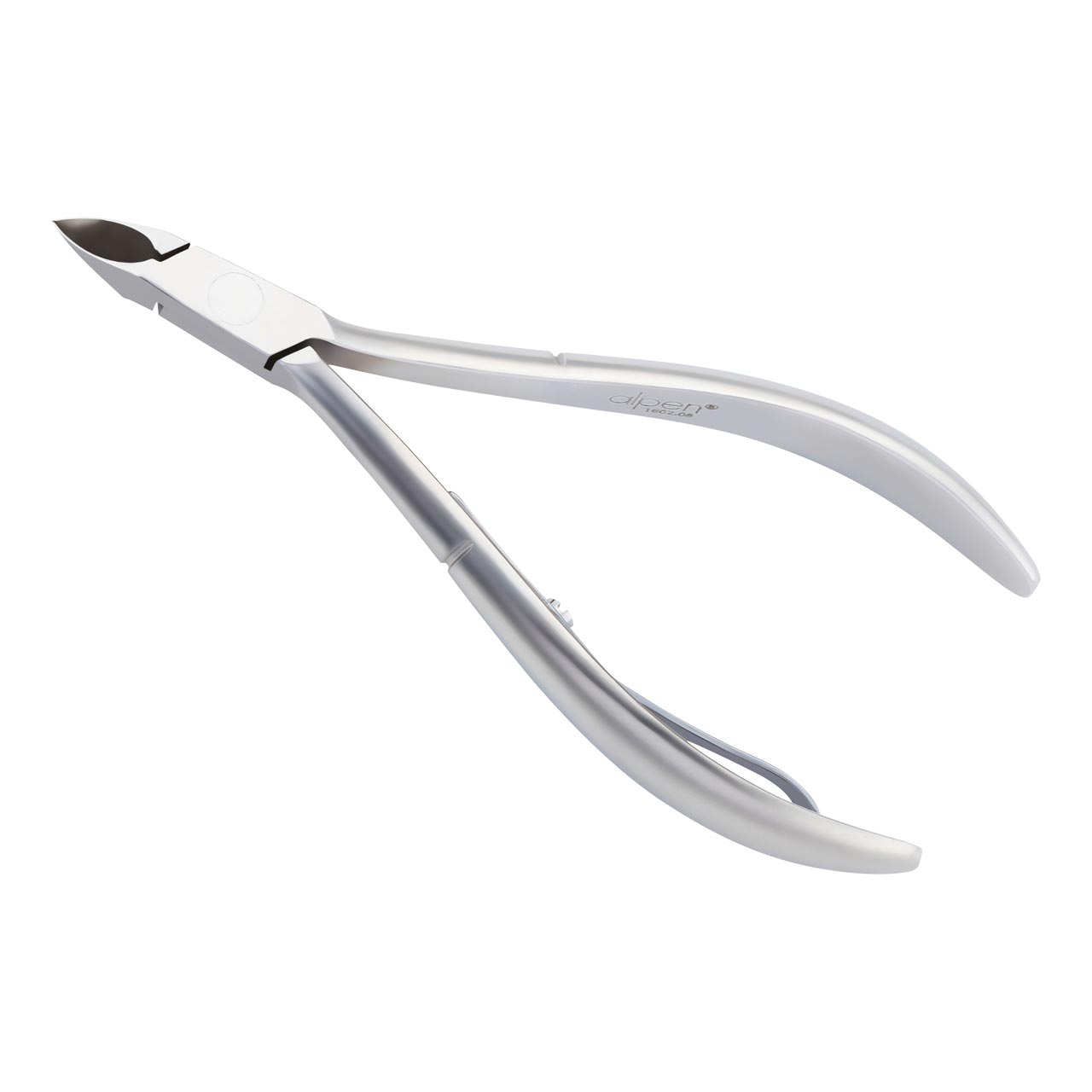 Nagelhautzange von ALPEN, Carbonstahl C50, vernickelt, mit Feder. Die Feder öffnet die Zange nach dem Schneiden automatisch, sie wird dafür vor Gebrauch nach oben gedreht. Schnittlänge 8 mm. Zum sicheren Entfernen von Nagelhaut, auch in feinsten Nagelecken.