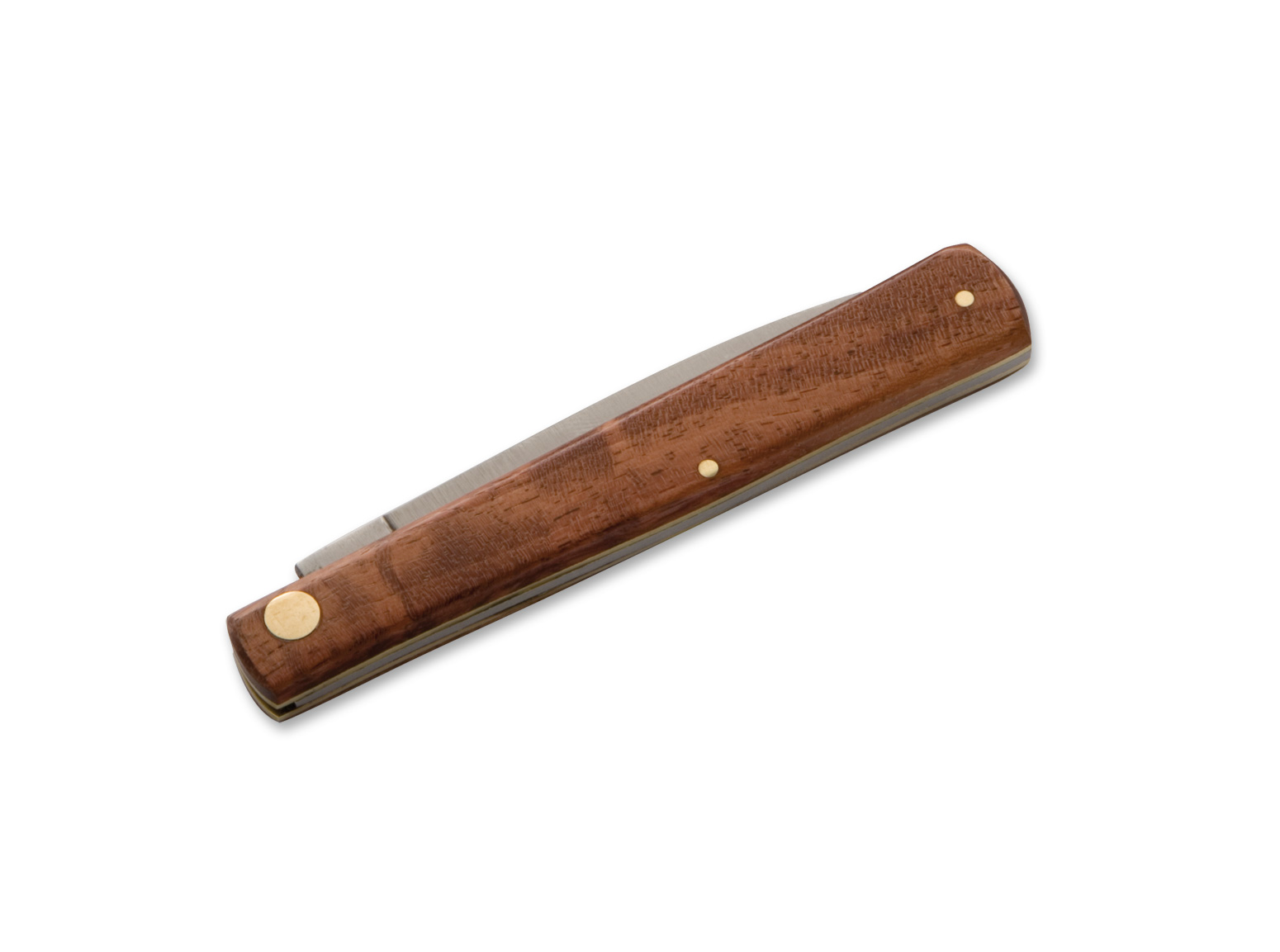 Die typisch gerade und langgestreckte Form des Siciliano ist als typisches Gebrauchsmesser aus Sizilien ein perfektes Alltags- und Vespermesser. Die Beschalung aus Kotibé-Holz besitzt einen warmen, leicht rötlichen Farbton und sitzt auf Messingplatinen. Die schlanke Klinge aus rostfreiem 420er Klingenstahl wird durch die kräftige Feder des Slipjoint offengehalten.