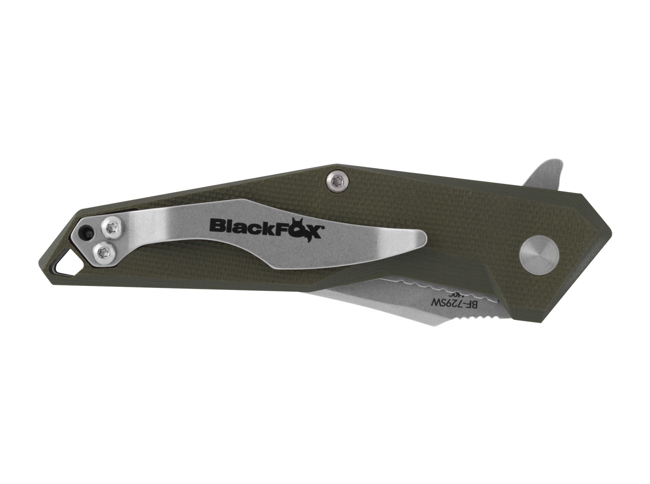 Das Kravi von BlackFox kombiniert einen geometrischen, aber dennoch komfortabel in der Hand liegenden Griff mit einer Klingenform mit der Anmutung eines Raubtierkopfes. Die Klinge aus 440C-Stahl verfügt über einen Zwei-Phasen-Schliff mit schlanker Spitze und konkaver Schneide im hinteren Bereich. Nach dem schnellen und bequemen Öffnen per Flipper verriegelt die Klinge zuverlässig per Linerlock. Der Griff aus G10 ist mit einem langen, dreifach verschraubten Clip ausgestattet.