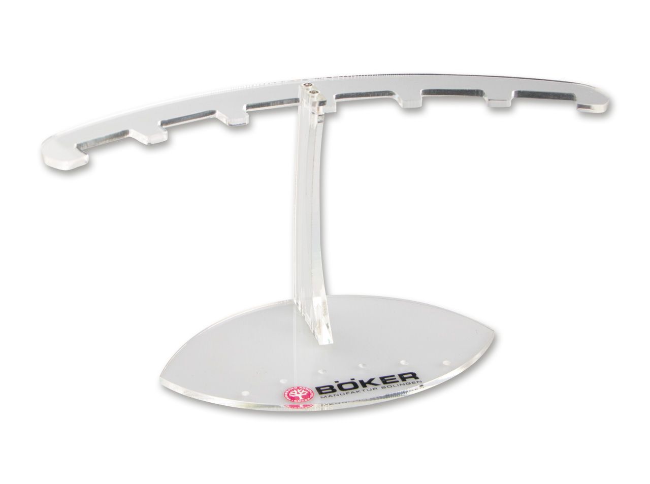 Acryl-Messerständer mit Böker Aufdruck für bis zu 6 Fahrtenmesser.