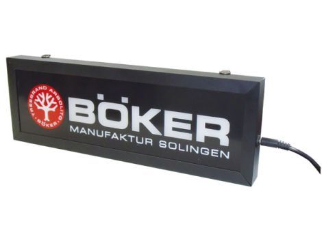 Böker LED-Display mit Laufschrift. Ein absoluter Blickfang für jedes Schaufenster oder die Sammlervitrine. Zum Aufstellen oder Aufhängen. 220V Stromanschluss. Abmessung 35 cm x 12 cm x 3 cm.