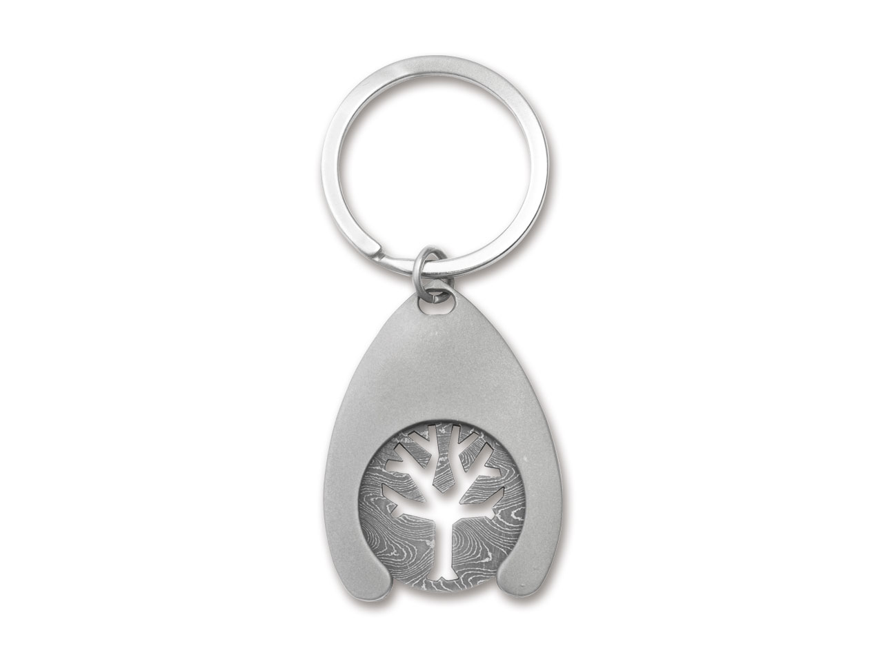 Der edle Böker Einkaufschip aus Damast kommt immer dann zum Einsatz, wenn statt der unberührten Wildnis ausnahmsweise nur der nächste Supermarkt stilvoll erkundet wird. Dank des hochwertigen Schlüsselanhängers ist der Chip vor Verlust geschützt und stets griffbereit.