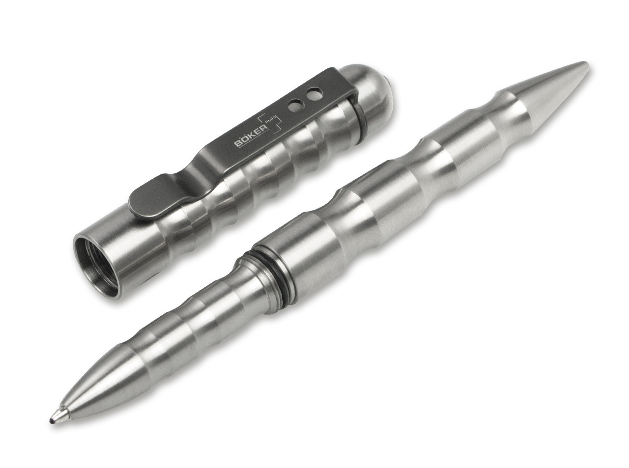 Mit dem vielseitig einsetzbaren Böker Plus MPP ist man für sämtliche Lebenslagen gerüstet. Der Stift dient primär natürlich als hochwertiges Schreibgerät, kann im Extremfall aber auch Leben retten. So kann der Glasbrecher in Notfallsituationen helfen, verunfallte Personen aus Autos zu befreien oder der stabile Körper für Kubotan-Techniken eingesetzt werden. Der mit breiten Rillen versehene Griffkörper wird aus hochfestem und antiallergischen Titan gefertigt und liegt sehr angenehm in der Hand. Durch den stabilen Clip bleibt der MPP stets griffbereit. Er ist kompatibel zu Fisher Space-Pen Minen #Pr4, zum Minenwechsel wird er per Linksgewinde auseinander geschraubt. Das verhindert ein unbeabsichtigtes Demontieren des Stiftes beim Abschrauben der Kappe. Der Durchmesser an der Kappe beträgt 13,9 Millimeter.