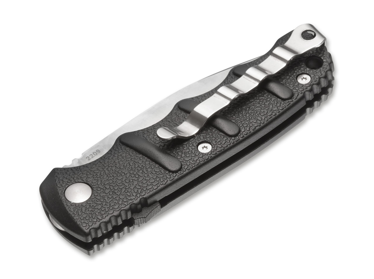 Das Böker Plus AKS-74 aus der Kalashnikov-Serie gehört mit Sicherheit zu den beliebtesten Modellen unseres Sortiments und wurde in den vergangenen Jahren in zahlreichen verschiedenen Varianten produziert. Mit dieser High-End-Version des Automatikmessers verneigen wir uns vor unseren Fans und deren Treue zu uns und bieten mit dem pulvermetallurgischen Hochleistungsstahl CPM-S-30V in der Kalashnikov-Serie ein ganz besonderes Highlight an. Der amerikanische Hochleistungsstahl ist seit vielen Jahren einer der Top-Klingenstähle weltweit und durch den hohen Materialpreis eigentlich ausschließlich im Hochpreissegment vertreten. Das Satin-Finish der Klingen hebt die Sonderversion auch optisch noch einmal deutlich ab. Der schwarze Griff aus Aluminium erinnert stark an das Bajonett des berühmten Sturmgewehrs und die erhabenen Strukturbahnen bieten in jeder Situation sicheren Halt. Mit Clip (Tip-Up).