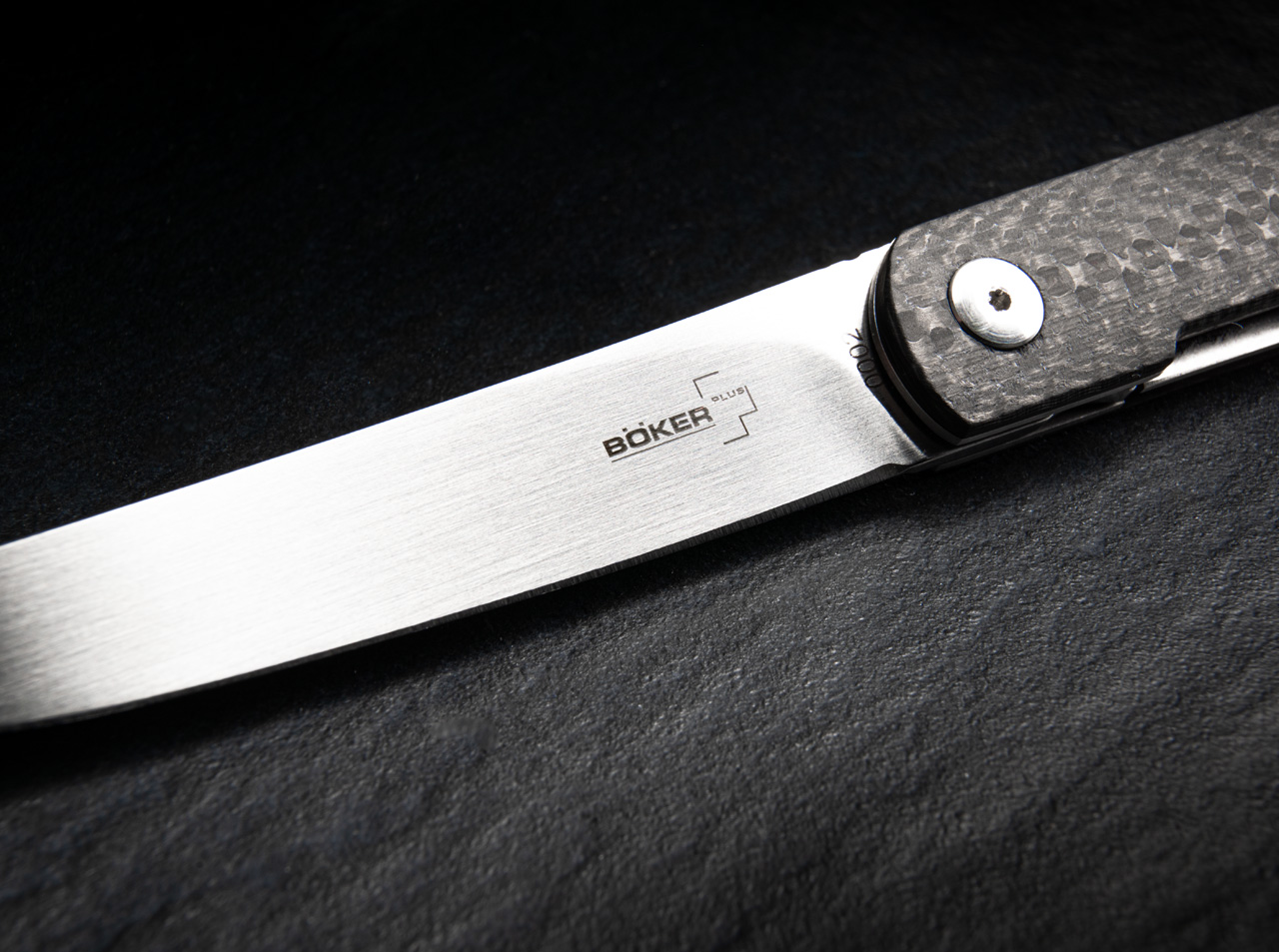 Das Böker Plus Nori ist ein weiteres elegantes Gentlemanmesser des japanischen Messermachers Kansei Matsuno. Die schlanke Bauweise und die leichtgewichtige Konstruktion des Wasabi wurden hier mit dem überaus praktischen Frontflipper und dem stabilen Linerlock des LRF kombiniert. Die kugelgelagerte Klinge aus VG-10 ist mit einer besonders feinen Längssatinierung versehen, die Griffschalen werden aus moderner Kohlefaser gefertigt und sitzen auf Edelstahlplatinen. Das geradlinige Design und die klassisch-japanische Klinge machen das Nori zu einem idealen Begleiter für den Alltag. Mit Fangriemenöse, gefrästem Clip (Tip-up) und hochwertigem Nylon-Etui zur Aufbewahrung.