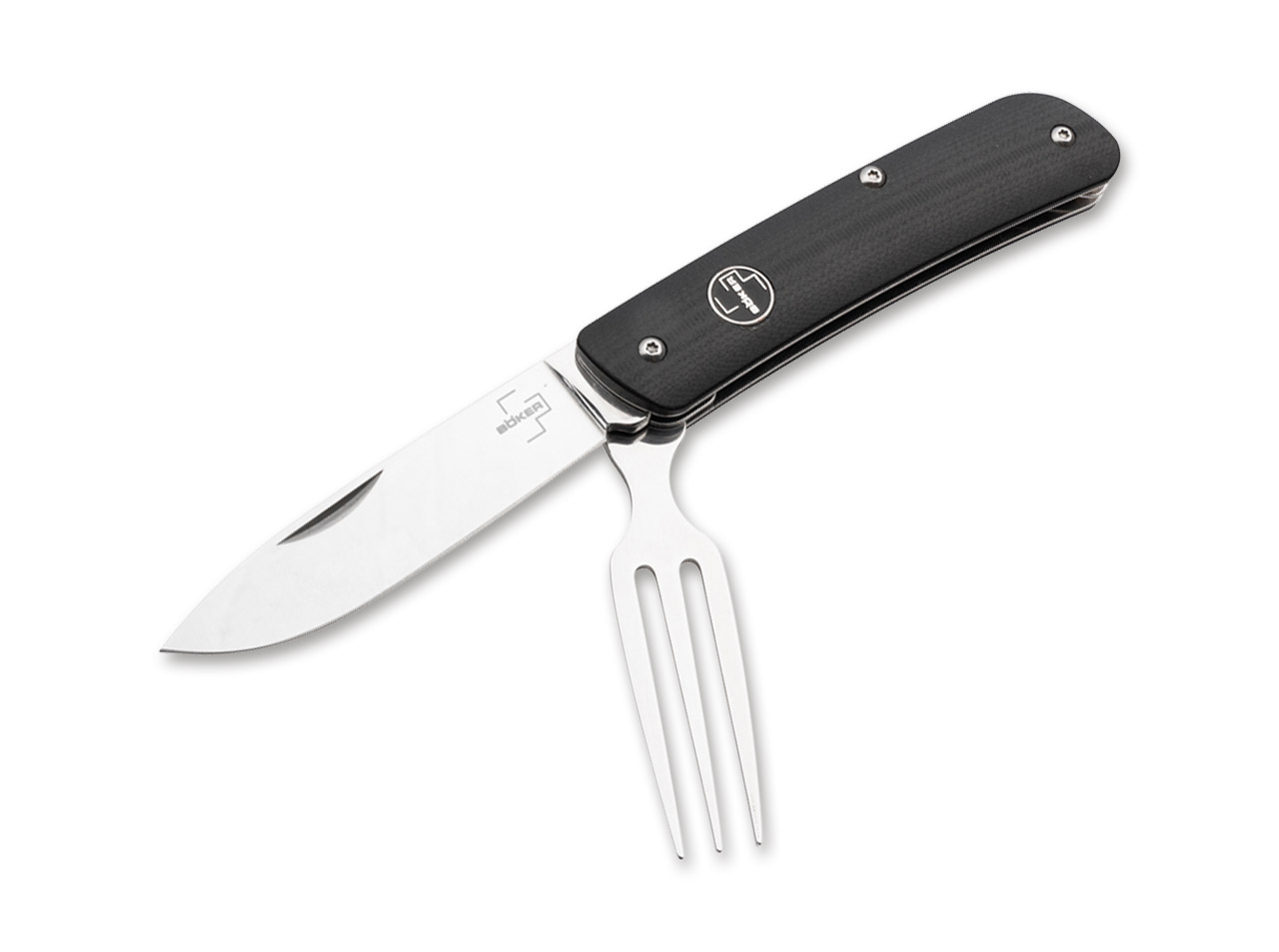 Ein Gesicht – viele Facetten! Die beliebte Böker Plus Tech Tool Serie genießt seit Jahren Kultstatus und erfindet sich immer wieder neu. Der Wiedererkennungswert des Multifunktionsmessers bleibt davon unberührt, vielmehr entspricht dies genau dieser DNA. Das Böker Plus Tech Tool Fork ist ein Taschenmesser mit Hauptklinge aus Sandvik 12C27, die klassisch per Nagelhau öffnet und nicht verriegelt. Herzstück dieses Modells ist die ausklappbare Gabel, die das Tech Tool zum idealen Begleiter für Camping- und Picknickausflüge macht. Vom Schälen des Apfels bis hin zum kulinarischen Hochgenuss aus der Konserve – das Tech Tool Fork macht den Unterschied ohne Unterschiede zu machen. Der angenehm konturierte Griff aus schwarzem G10 liegt ausgewogen in der Hand und lässt sich schnell reinigen. Mit umsetzbarem Deep-Carry-Clip (r).