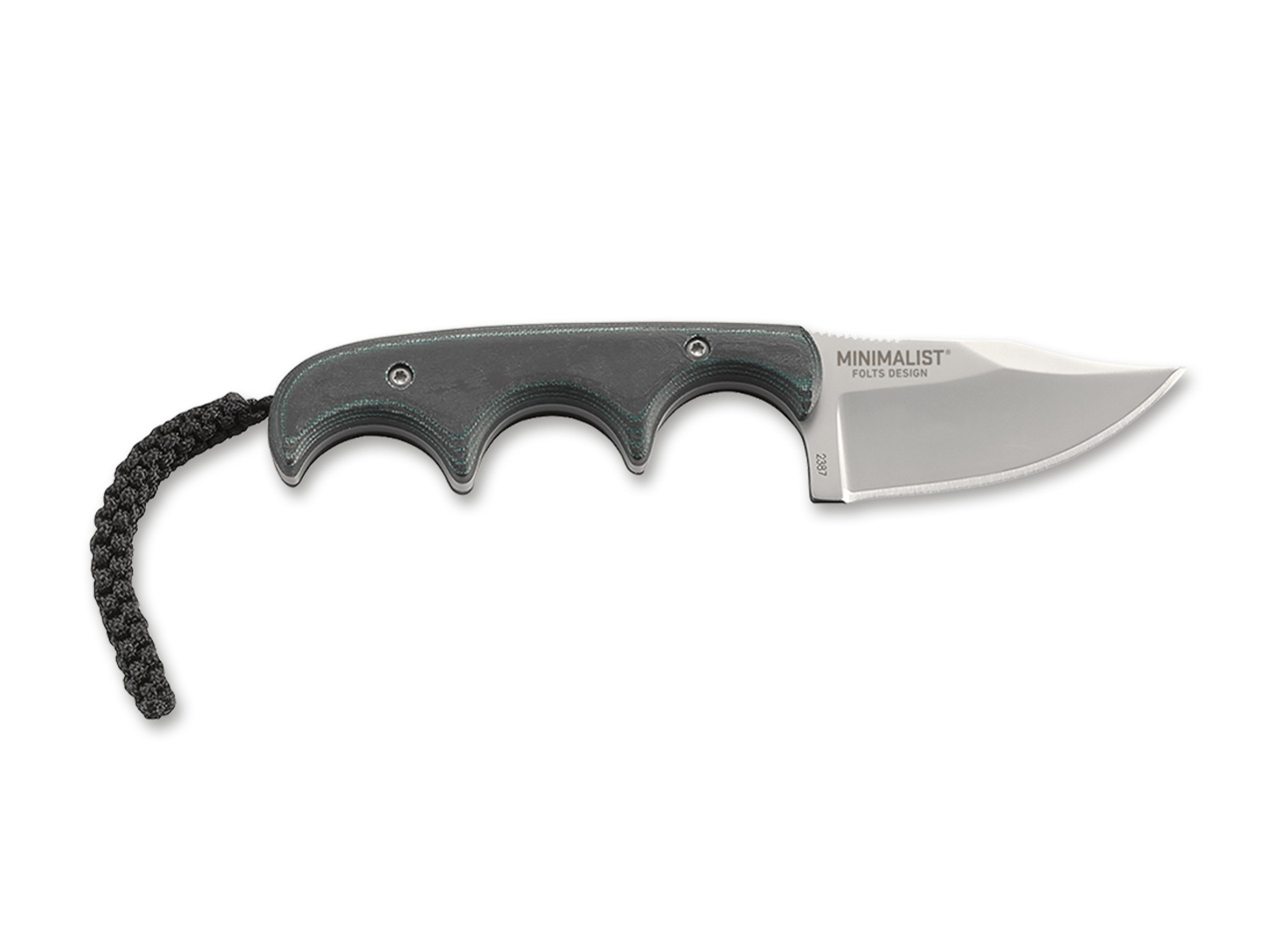 Die CRKT Minimalist Serie von Alan Folts begeistert seit Jahren viele Fans. Das Einsatzspektrum des beliebten Messers ist beträchtlich, besonders als Neck Knife erweisen sich die verschiedenen Modelle als echte Allrounder für alle kleineren Schneidarbeiten des Alltages. Die klassische bauchige Bowie-Klinge aus 5Cr15MoV ist geeignet für kleinere Arbeiten rund um Camp und Jagd. Natürlich wird auch der urbane Alltag durch die Vielseitigkeit dieser traditionellen Klingenform mit Leichtigkeit bewältigt. Kaum ein anderes Messer bietet bei derart kompakten Abmessungen und einem so geringen Gewicht dieses Maximum an Ergonomie. Die mitgelieferte Zytel-Scheide mit Tragekordel wird von Hand an das Messer angepasst.