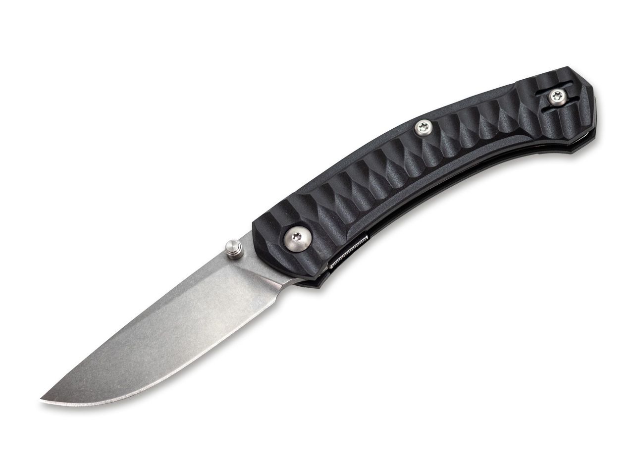 Hochwertige Materialien und ein praxistaugliches Design zeichnen das GiantMouse ACE Iona aus. Das von Jens Ansø und Jesper Voxnæs entworfene Taschenmesser ist mit einer Drop-Point-Klinge aus Böhler M390 ausgestattet, die mit einem widerstandsfähigem Stonewash-Finish versehen ist. Sie wird per Daumenpin geöffnet und von einem stabilen Linerlock gesichert. Der texturierte Griff besteht aus schwarzem FRN und liegt dank der dreidimensionalen Fräsung stets sicher in der Hand. Mit umsetzbarem Drahtclip (Tip-up/l-r).