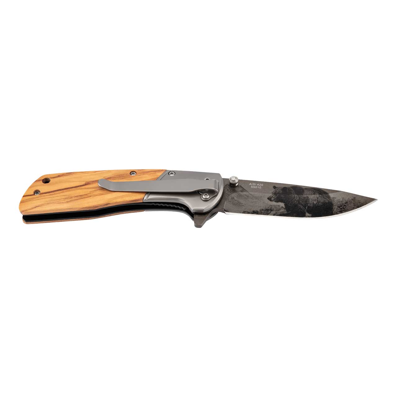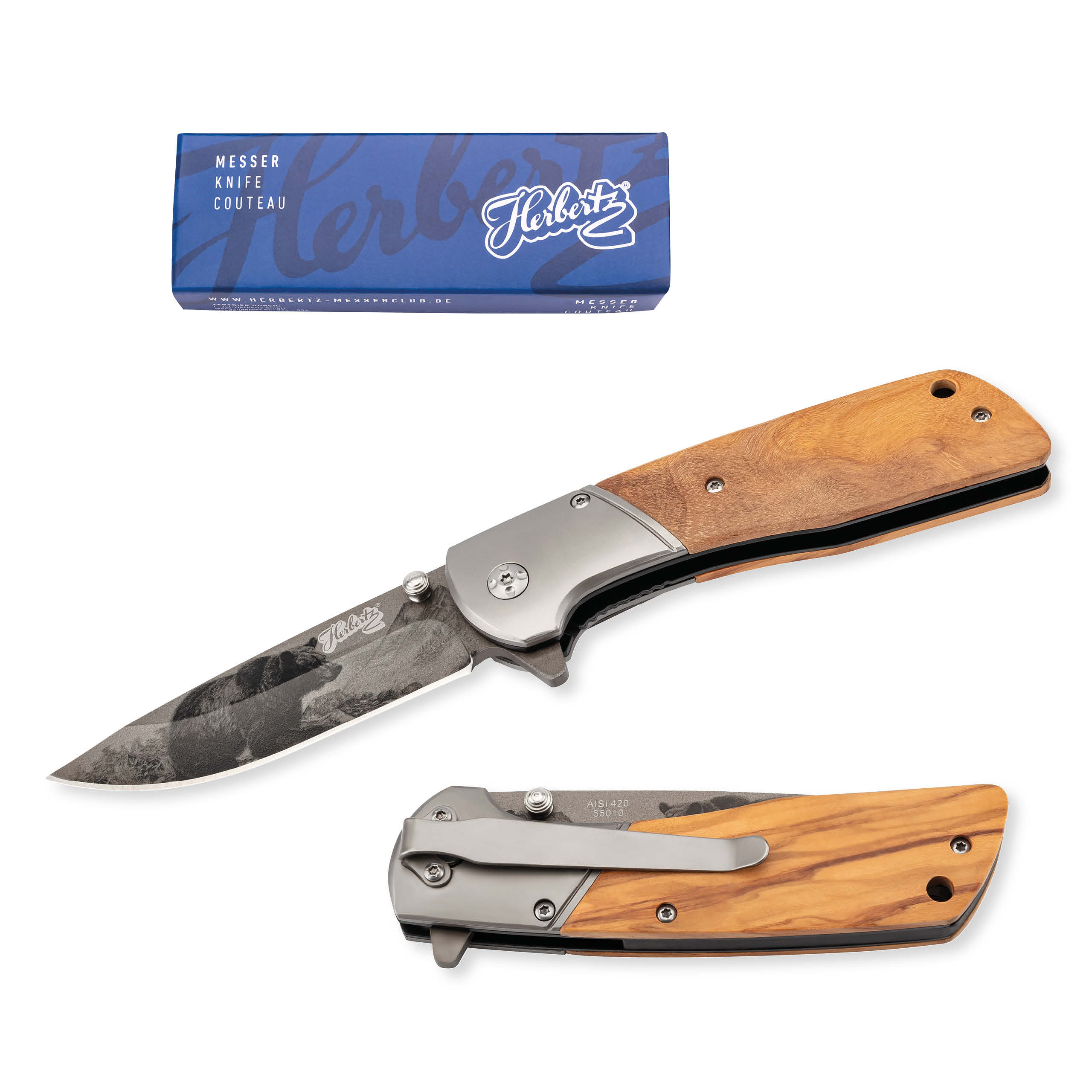 Herbertz Einhandmesser Olivenholz, Bärenmotiv