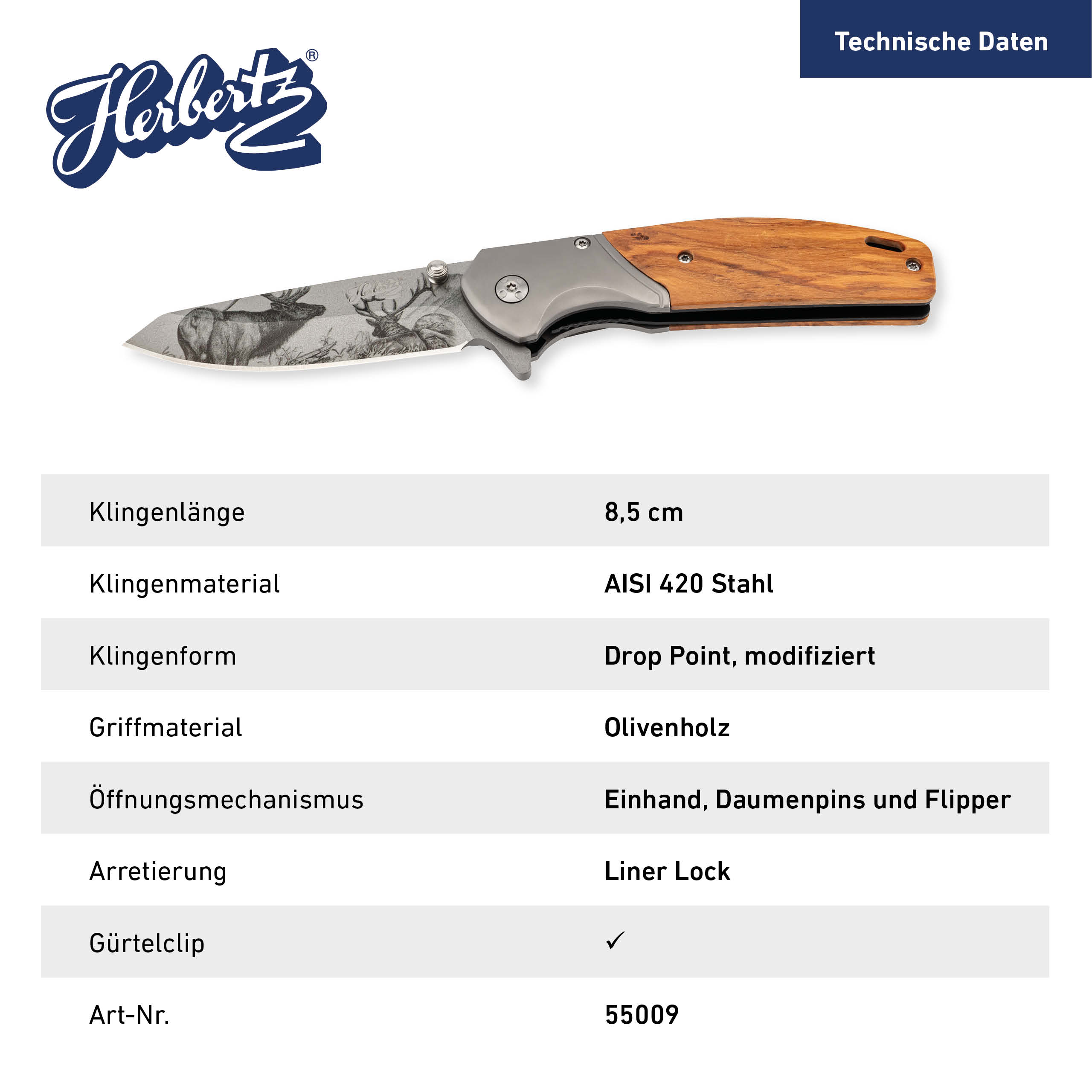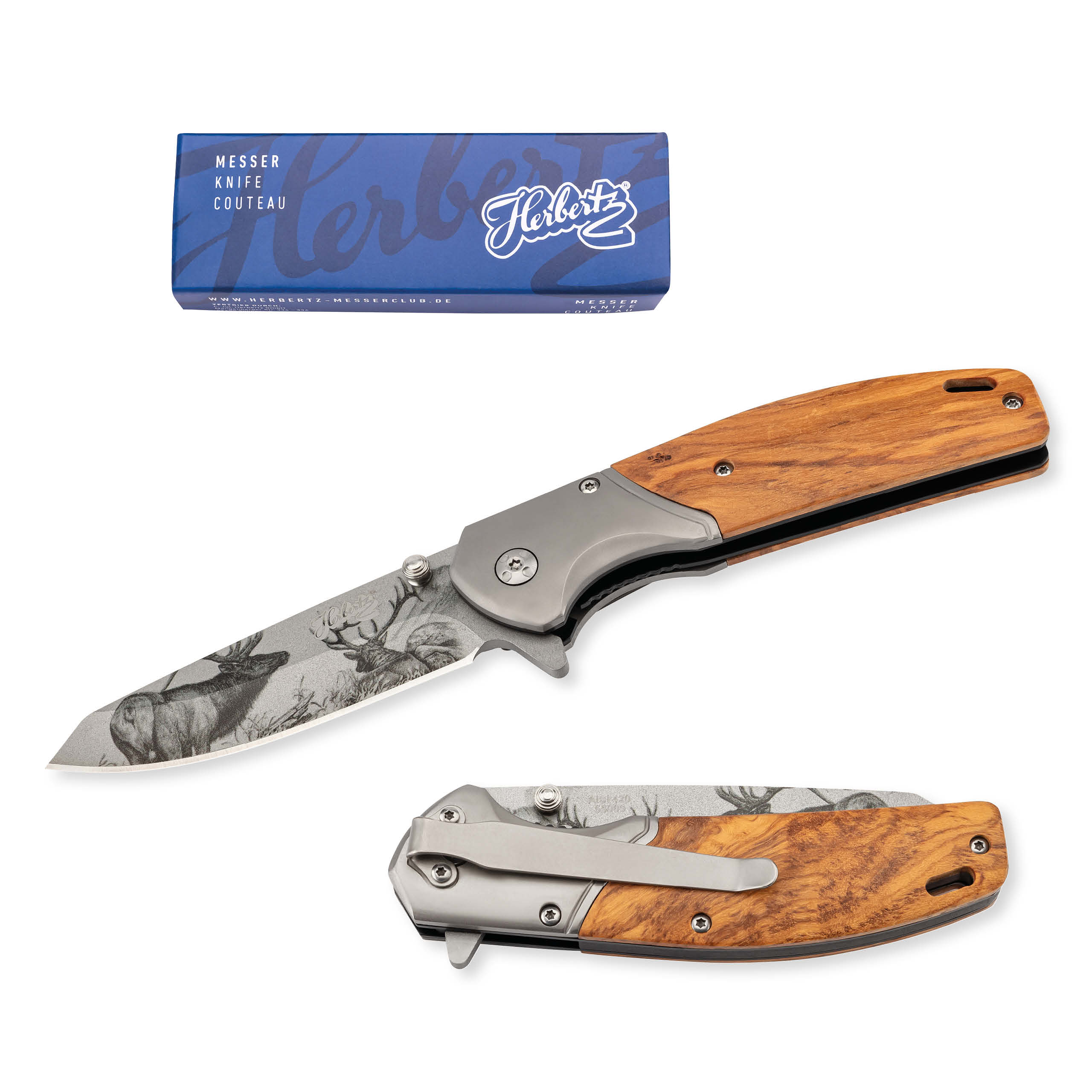 Herbertz Einhandmesser Olivenholz, Hirschmotiv