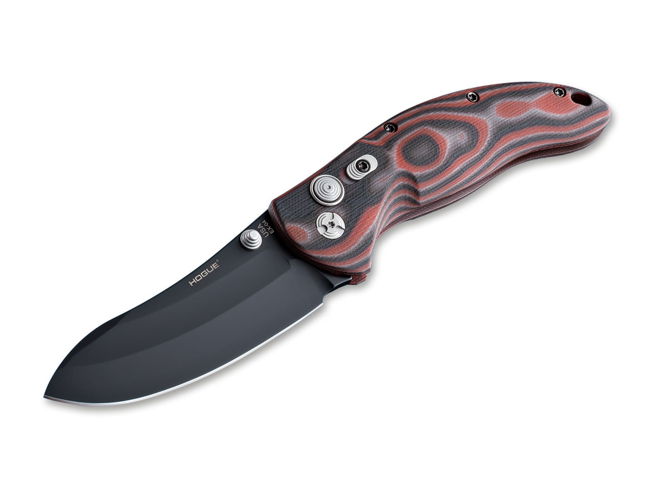 Das Hogue EX-04 ist mit seinem angenehm handfüllenden Griff und der bauchigen Klinge im Alltag genauso zuhause wie auf der Jagd oder im Einsatz. Der solide Griff ist aus rotem G-Mascus gefertigt und trägt die Druckknopf-Verriegelung mit zusätzlicher Schiebesicherung. Ein Gebrauchsmesser, das sich durch Vielseitigkeit und Robustheit auszeichnet. Wharncliffe-Klinge aus 154CM mit Cerakote-Beschichtung. Mit Clip (Tip-down) und Fangriemenöse.