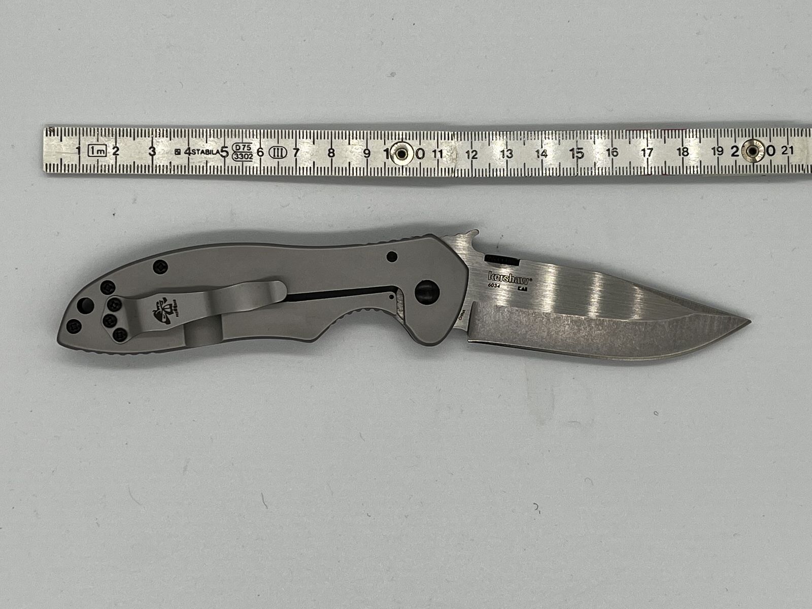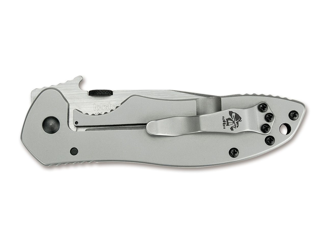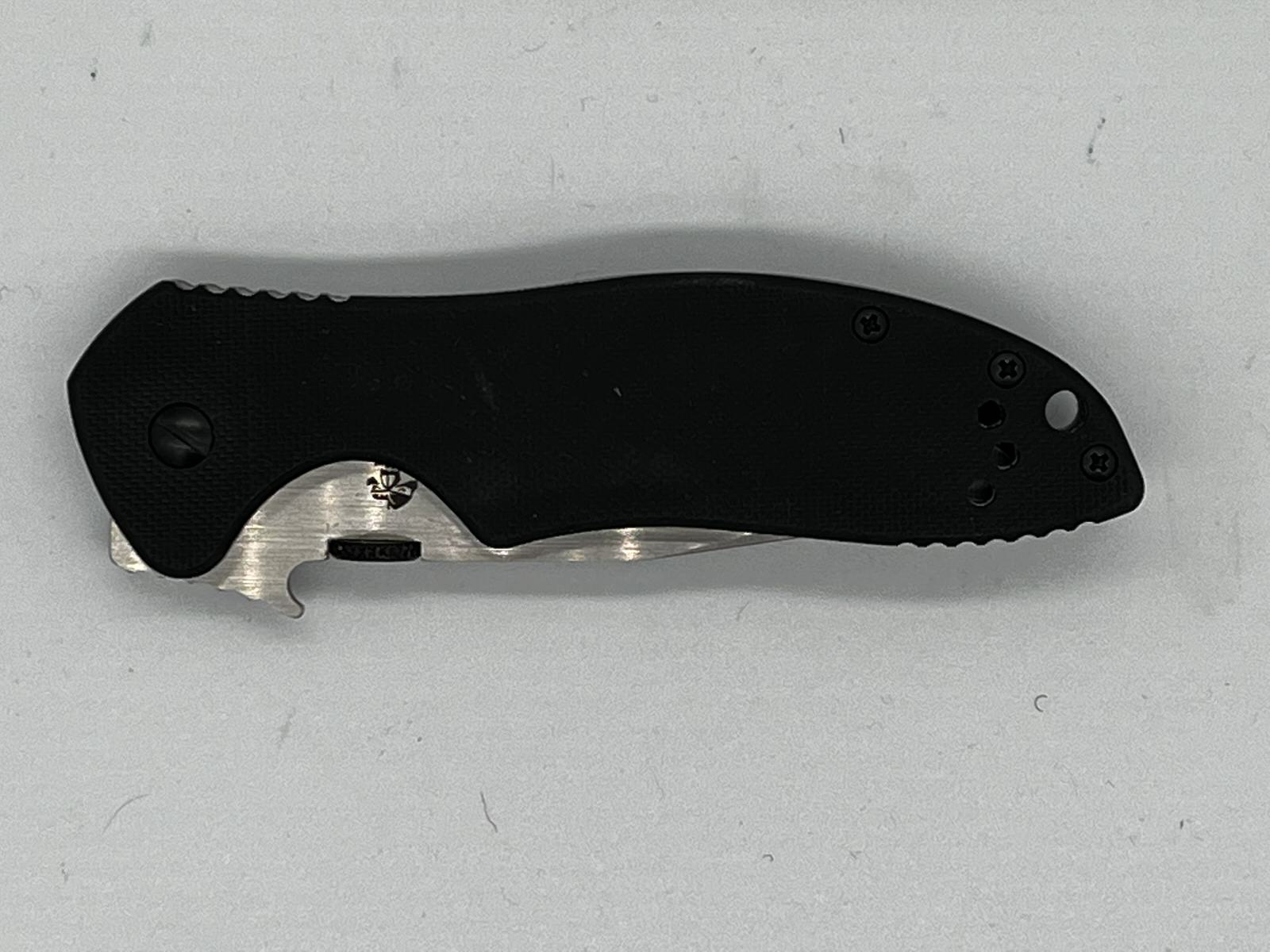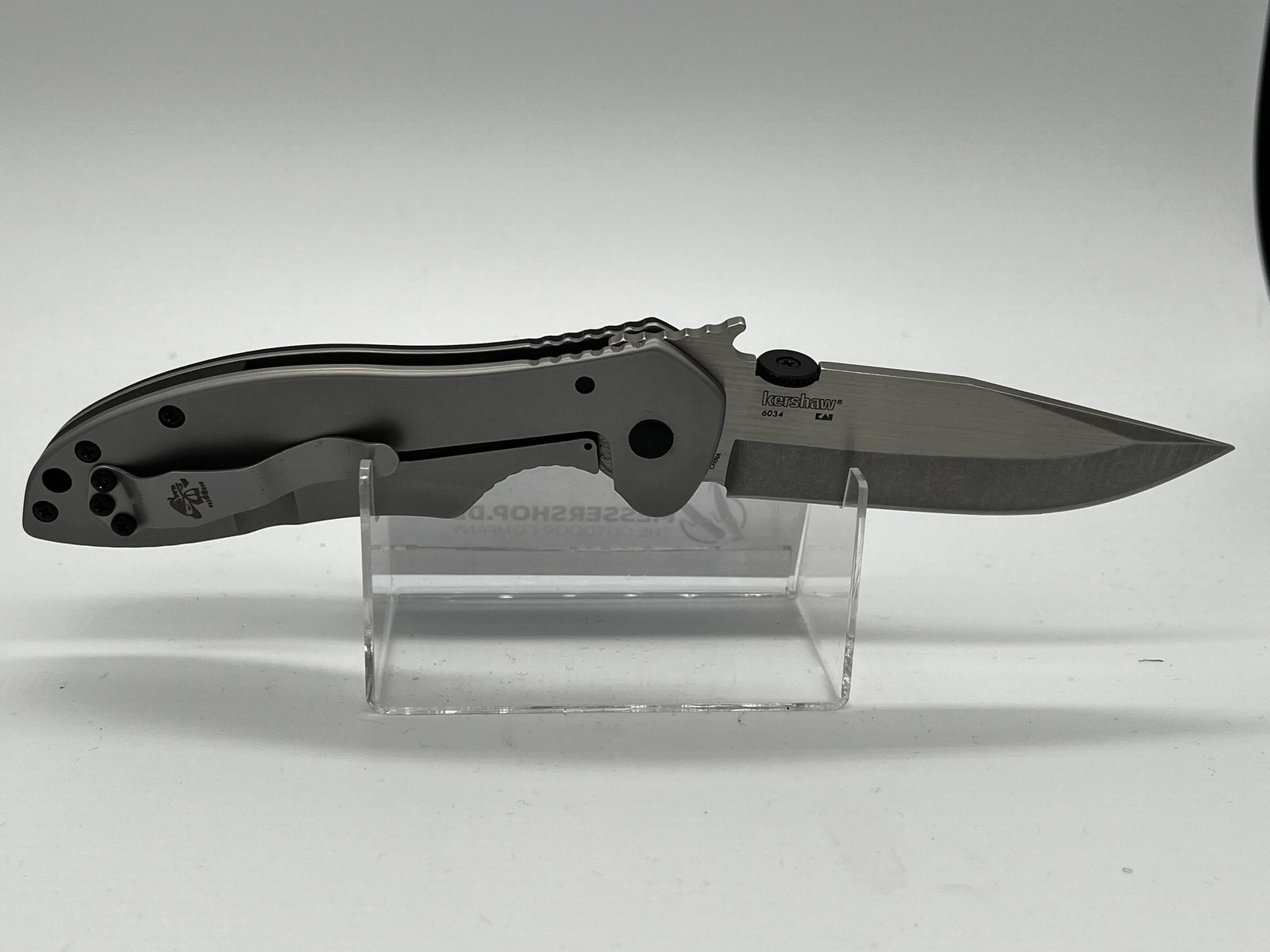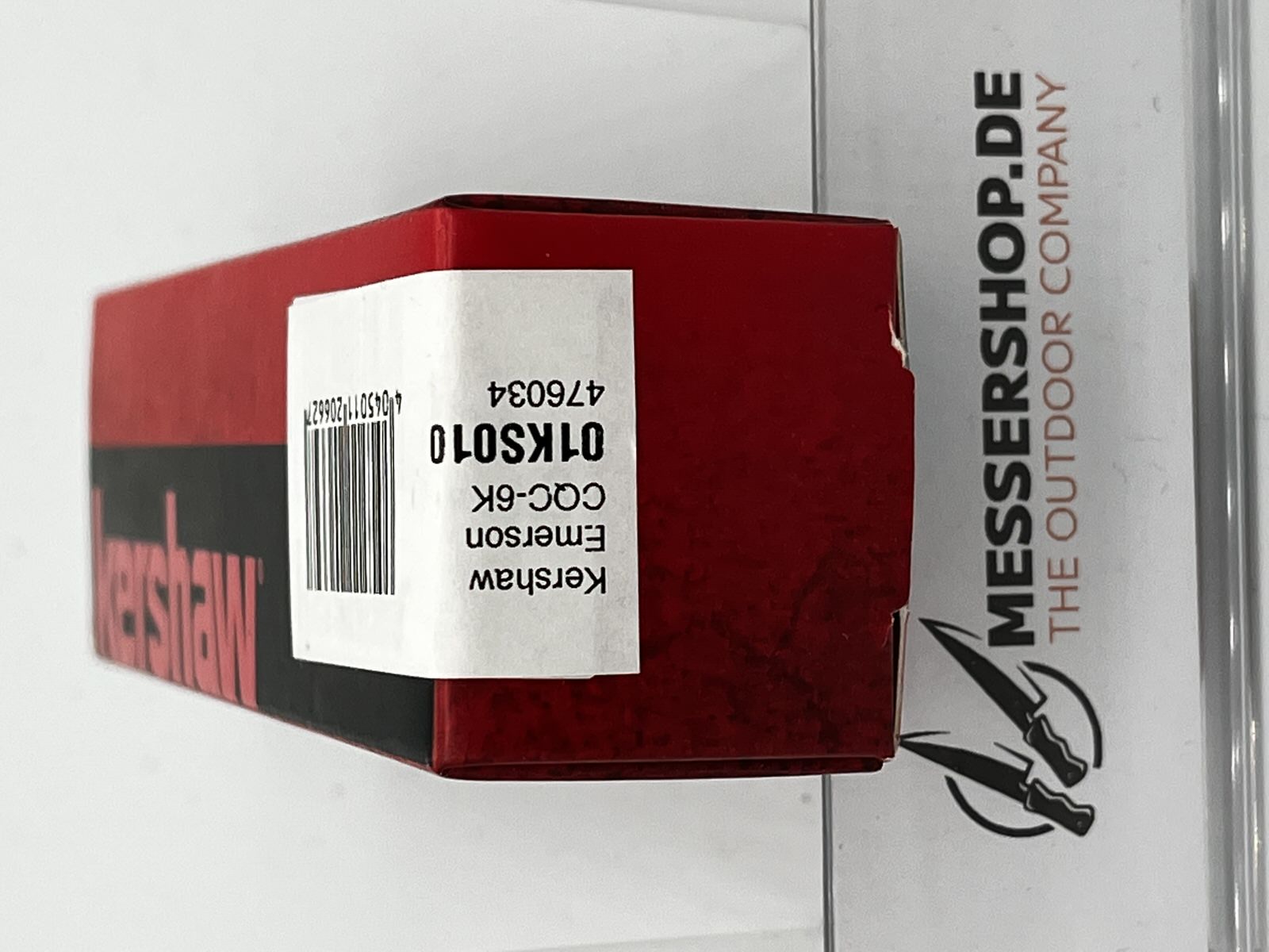 Das von Ernest Emerson entworfene Kershaw CQC-6K ist mit einer modifizierten Clip-Point-Klinge ausgestattet, die aus 8Cr14MoV gefertigt wird und mit einem Two-Tone-Finish versehen ist. Sie wird per Daumenscheibe oder patentiertem Wave-Opener geöffnet. Der kleinen Haken am Klingenrücken ermöglicht die Klinge beim Ziehen aus der Hosentasche gleichzeitig zu öffnen. Die Arretierung übernimmt ein stabiler Framelock. Die vordere Griffschale besteht aus texturiertem G10 und liegt auch bei schlechten Witterungsbedingungen sicher in der Hand. Mit Fangriemenöse und umsetzbarem Clip (Tip-up/l-r).