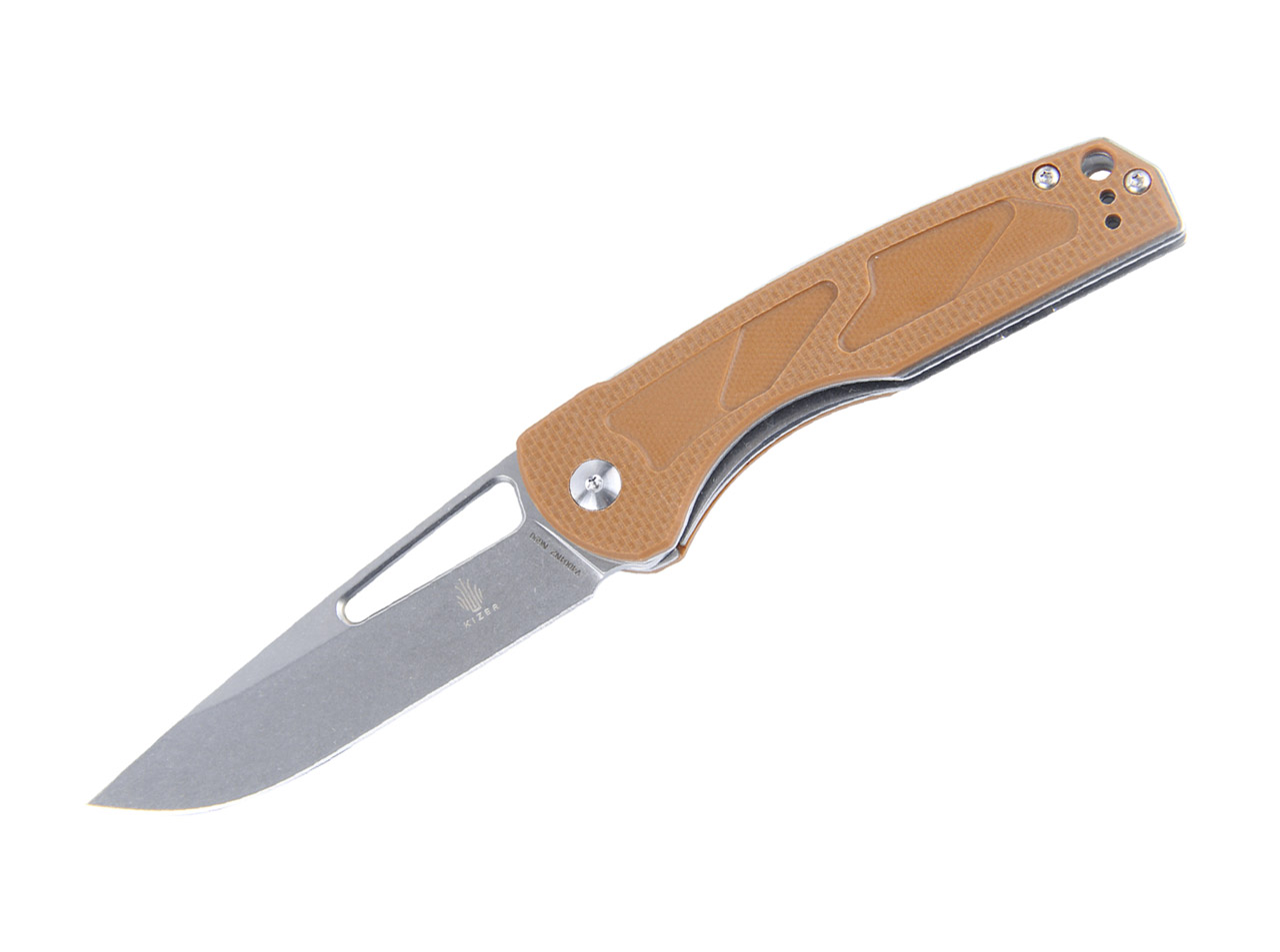 Das Kizer Yukon ist schlank, schlicht und ein überaus zuverlässiger Begleiter. Die Klinge aus solidem N690 ist mit einer gewichtsreduzierenden großzügigen Daumenöffnung versehen, die eine zügige einhändige Öffnung ermöglicht. Der zuverlässige Linerlock ist mit strukturierten Griffschalen aus braunem G10 ausgestattet. Mit Fangriemenöse und umsetzbarem aus Stahl gestanztem Clip (Tip-up).