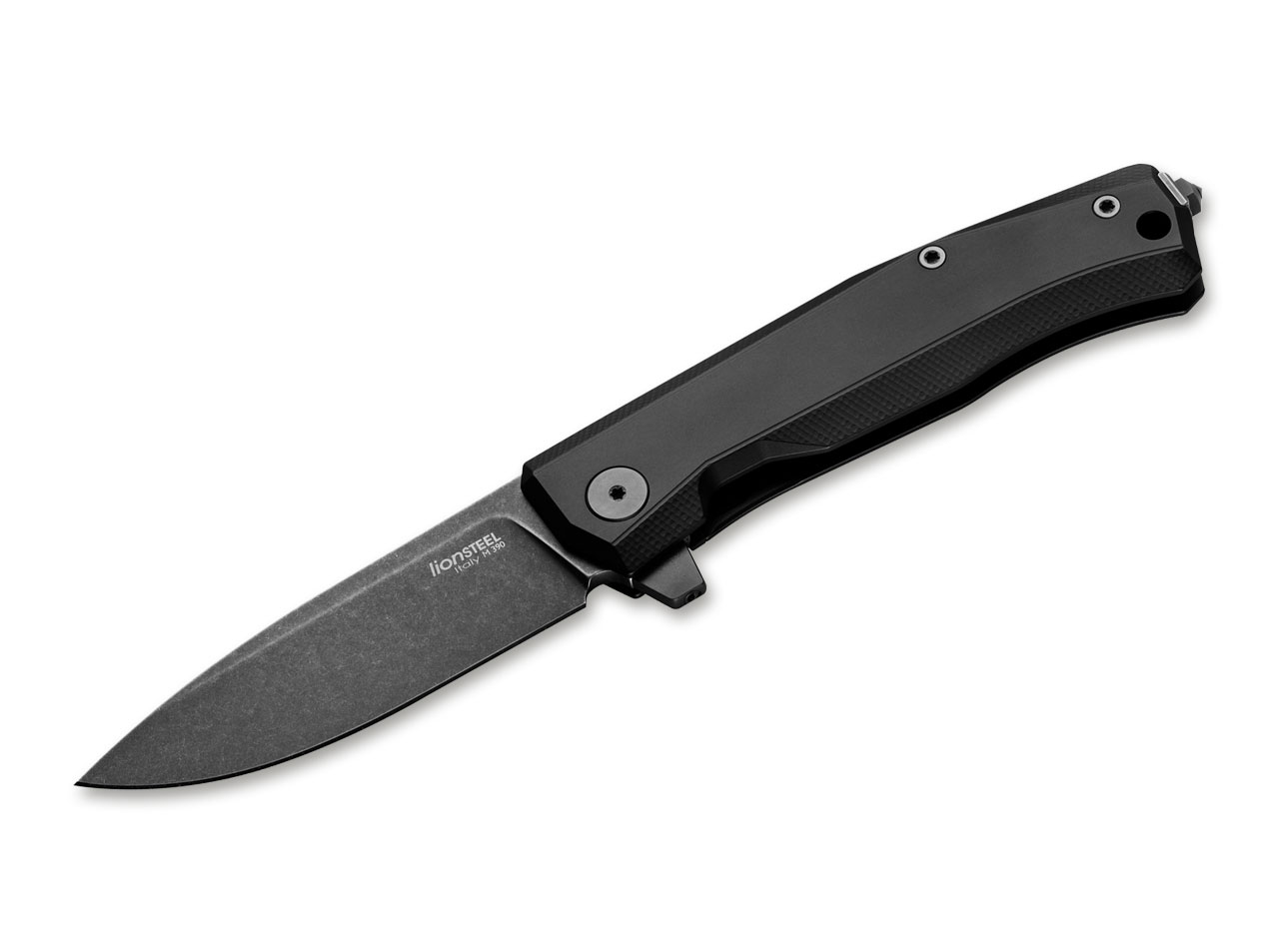 Das beliebte Myto Aluminium von LionSteel erweitert die erfolgreiche Linie des Designers Molletta und überzeugt mit einer schwarz beschichteten Klinge aus M390. Weiterhin zählt das Messer auf die Flipper-Öffnung und den zuverlässigen Framelock. Der ästhetische und zugleich ergonomische Griff ist aus schwarzem Aluminium gefertigt und wird von einem Glasbrecher sowie dem dreidimensional gefrästen Clip abgerundet. Mit Fangriemenöse.