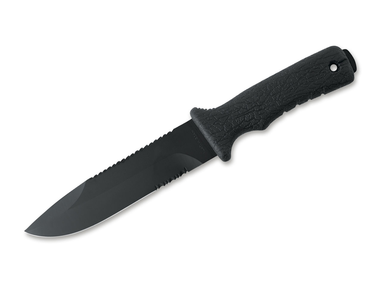 An Vielseitigkeit macht dem komplett in Schwarz gehaltenen MAC 631BE so schnell niemand etwas vor. Die robuste Klinge aus Nitro-B ist mit einem Teilwellenschliff versehen, während die Klingenoberseite mit einem Sägerücken ausgestattet ist. Aufgrund der ergonomischen Aussparungen sowie der texturierten Oberfläche fasst sich der Griff aus Polypropylen und TPE bei jeder Witterung äußerst sicher. Die Hammerfläche am Griffende rundet die Kompetenzen des Messers ab. Mit Fangriemenöse und passgenauer Nylonscheide.