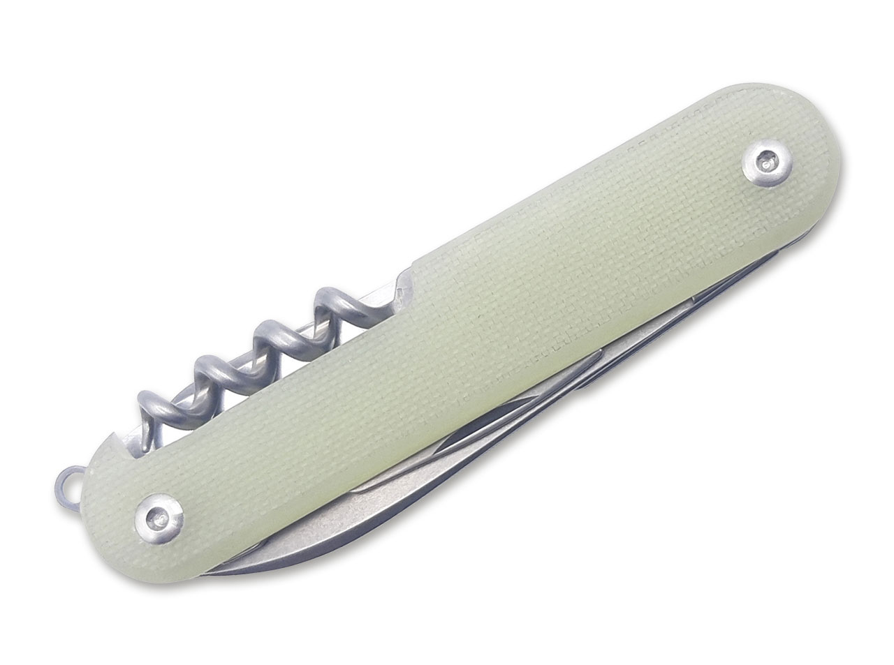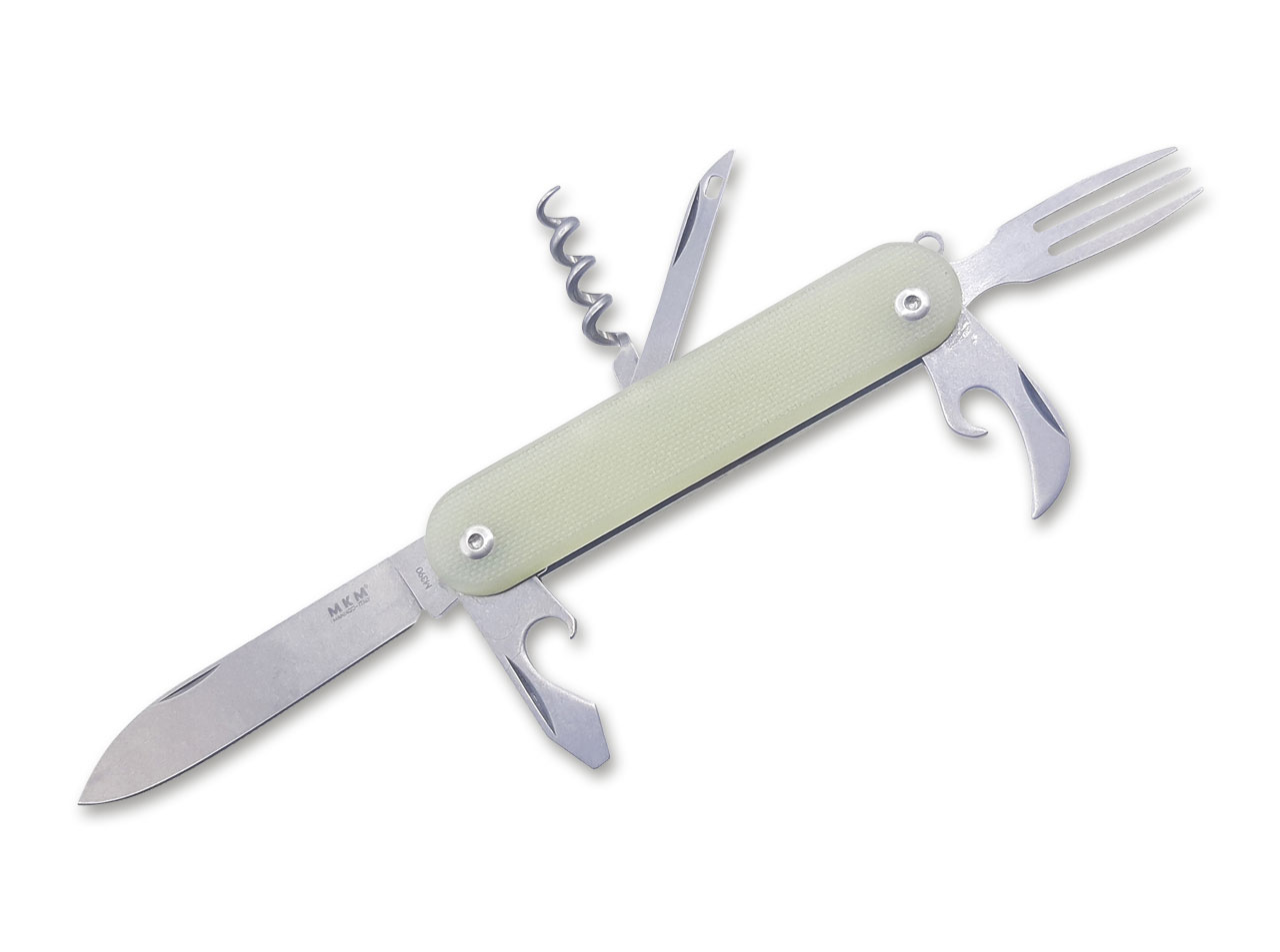 Das moderne Slipjoint Messer ist mit sechs Werkzeugen für die meisten Situationen des Alltags gewappnet. Die Hauptklinge aus hochwertigem M390 öffnet per Nagelhau und wird von einer Entourage aus Kapselheber, Dosenöffner, Korkenzieher, Stechahle und Gabel begleitet. Der rutschfeste Griff ist mit G10 Schalen ausgestattet und verfügt über eine diskrete Fangriemenöse. Dank seiner Vielseitigkeit darf das MKM Malga 6 bei keinem Picknick fehlen.