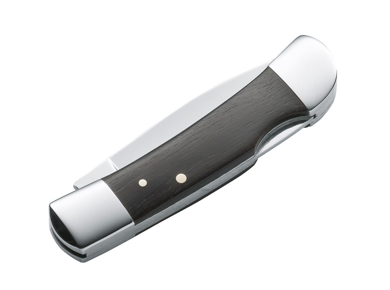 Der Wert dieses feinen Messers spiegelt sich schon in seinem Namen wider. Die polierte Klinge aus rostfreiem 440er Stahl arretiert sauber über den Lockback-Verschluss. Die dunkle Holzbeschalung aus Palisander harmoniert perfekt mit den ebenfalls polierten Metallbacken. Ein Messer, klein in der Hosentasche und groß im Nutzwert!
