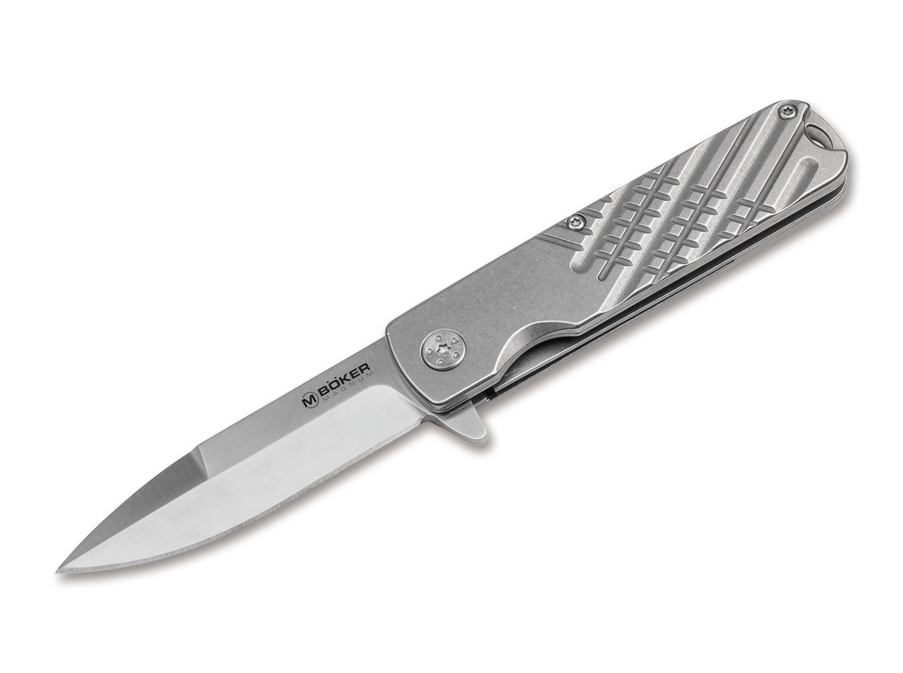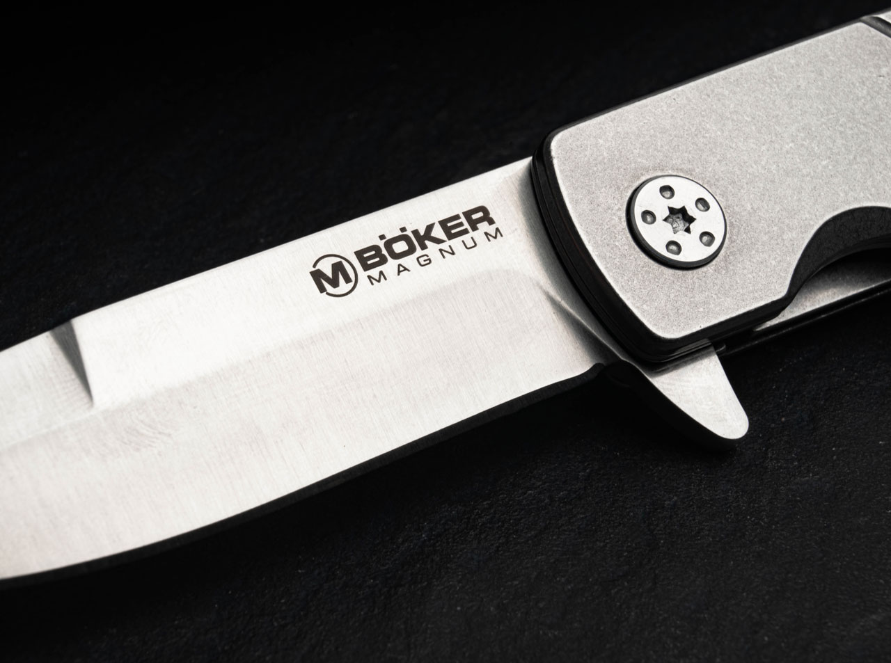 Die gradlinige und nahezu nüchterne Erscheinung des Magnum Triple-S Point wird durch die gekreuzten diagonalen Fräsungen im Edelstahlgriff gekonnt durchbrochen. Das handliche Taschenmesser ist mit einer satinierten Spearpoint-Klinge aus rostfreiem 440B ausgestattet, die mit einer modernen Fehlschärfe versehen ist und per Flipper geöffnet wird. Der stabile Linerlock lässt sich dank der ergonomischen Aussparung im Stonewash-Griff bequem bedienen und sichert die Klinge zuverlässig. Mit Fangriemenöse und praktischem Clip (Tip-up/r).