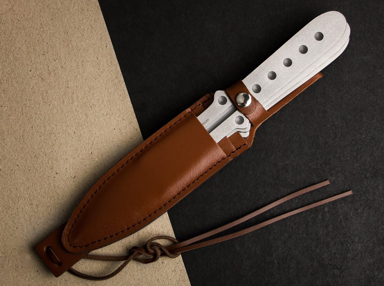 Das Wurfmesser Magnum Ziel II wurde von John Bailey entworfen und eignet sich sowohl für Anfänger als auch für Profis. Die 360 Gramm schwere Ganzstahlkonstruktion aus rostfreiem 420er Stahl ist bestens ausbalanciert und garantiert Freude und Spaß bei jedem Wurf. Die Hohlkehlen und Vertiefungen wurden nach einem von Bailey streng festgelegten Muster gefertigt. Aus den Designs des professionellen Messerwerfers John Bailey sprechen über 40 Jahre Erfahrung. Der Experte auf diesem Gebiet veröffentlichte bereits eine Vielzahl von Artikeln, unter anderem im Blade Magazine, dem American Survival Guide und dem American Knife Thrower`s Alliance Newsletter. Das Set besteht aus drei Wurfmesser und einer Kombischeide.