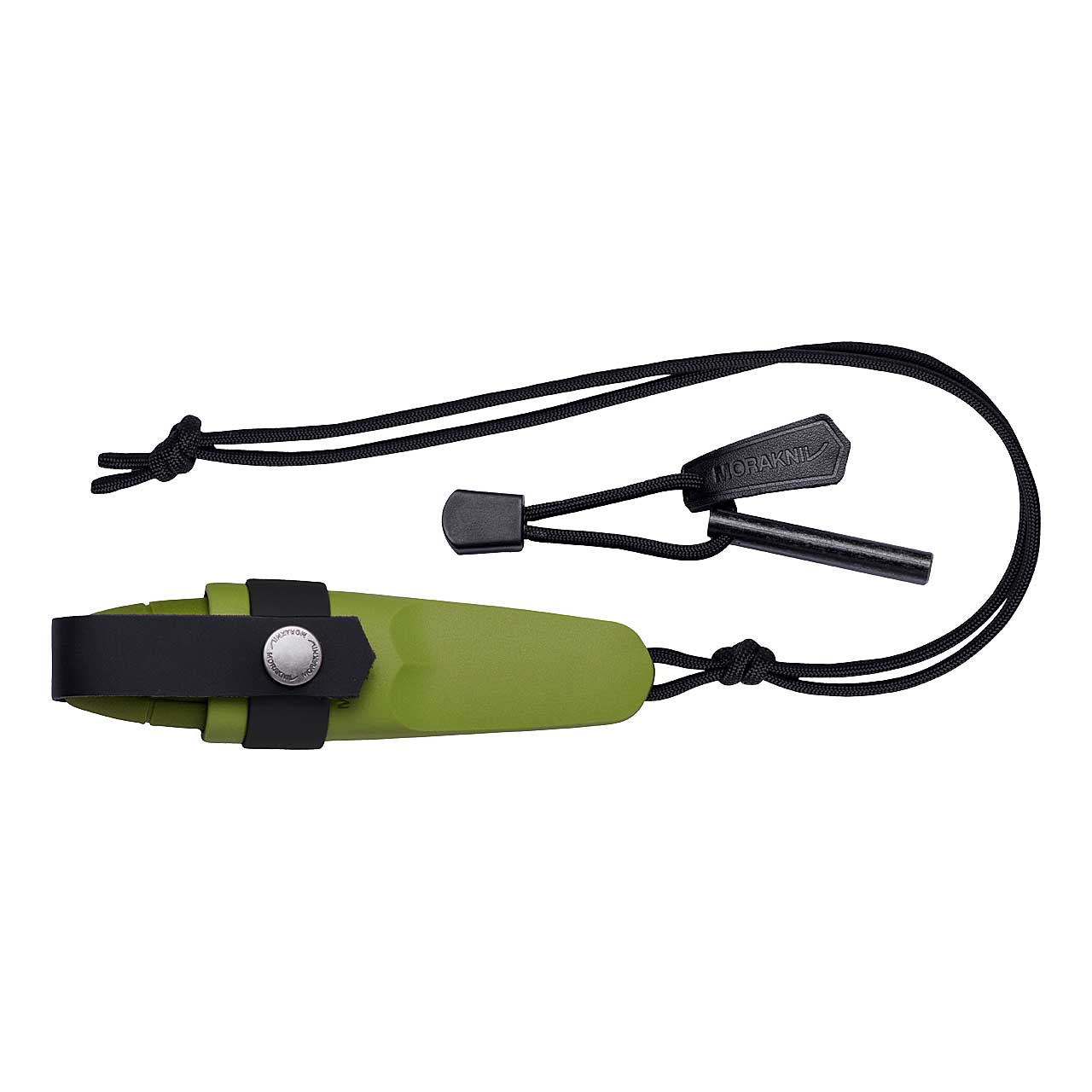 Mit dem Modell ELDRIS NECK KNIFE stellt Morakniv ein feststehendes Messer in Taschenmessergröße vor. Die Klinge aus rostfreiem Stahl 12C27 weist eine Rückenstärke von 2 mm auf und ist gerade mal 56 mm lang (oder in diesem Fall kurz). Der kantige Klingenrücken kann als Reibefläche für einen Feuerstarter verwendet werden. Der rutschhemmende, grüne Kunststoffgriff gewährt auch bei feuchter Umgebung einen zuverlässigen Halt. Die festsitzende Köcherscheide umschließt das Messer beim Transport. Aufgrund der geringen Abmessungen kann dieses Modell sogar in der Hosentasche getragen werden. Als Zubehör sind die folgenden Extras im Lieferumfang enthalten: Kordel, um das Messer als Neckknife zu tragen, zusätzliche Halterung, Feuerstarter
