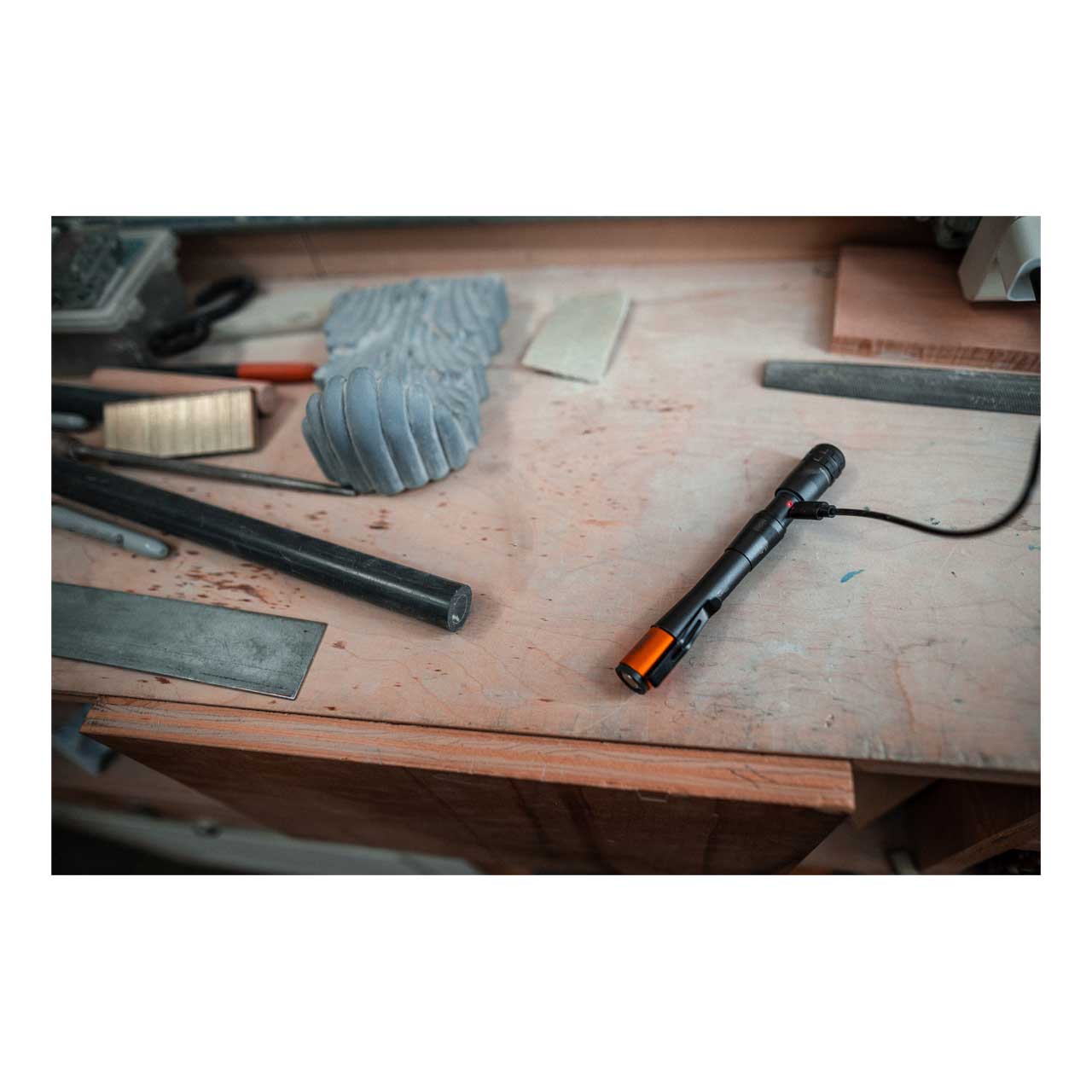 Die wiederaufladbare Nebo INSPECTOR 500+ ist eine starke, staub- und wasserdichte (IPX7) Kombination aus LED-Stifttaschenlampe und Mini-Laterne mit 4 Leuchtmodi. Ausgestattet mit Smart Power Control zur Leistungsoptimierung, Edelstahl Taschenclip, Micro-USB Ladebuchse mit Ladestandsanzeige, Micro-USB auf USB-Ladekabel und einem Lithium-Ionen-Akku. Dank Flex-Power Technologie kann die Lampe mit geringerer Leistung auch durch zwei AAA-Batterien betrieben werden. Technische Daten: Lichtstrom Stiftlampe: 500 Lumen / 250 Lumen / 25 Lumen / 250 Lumen, Modi: Turbo / High / Low / Strobe, Leuchtweite: 142 Meter / 98 Meter / 31 Meter / 98 Meter, Laufzeit: 30 sec / 3,5 h / 8 h / 2,5 h, Lichtstrom Mini-Laterne: 400 Lumen / 200 Lumen / 20 Lumen / 200 Lumen, Modi: Turbo / High / Low / Strobe, Leuchtweite: 16 Meter / 11 Meter / 6 Meter / 11 Meter, Laufzeit: 30 sec / 3,5 h / 8 h / 2,5 h, Fallhöhe: 1 Meter, Wasserdicht: IPX7, Gewicht: 62 g (ohne Akku), Abmessungen: 160 mm (Länge) x 18 mm (Breite) x 18 mm (Höhe), Gehäusematerial: eloxiertes Flugzeugaluminium, Stromversorgung: Lithium-Ionen Akku, 750 mAh, Lieferumfang: USB- Ladekabel, Bedienungsanleitung