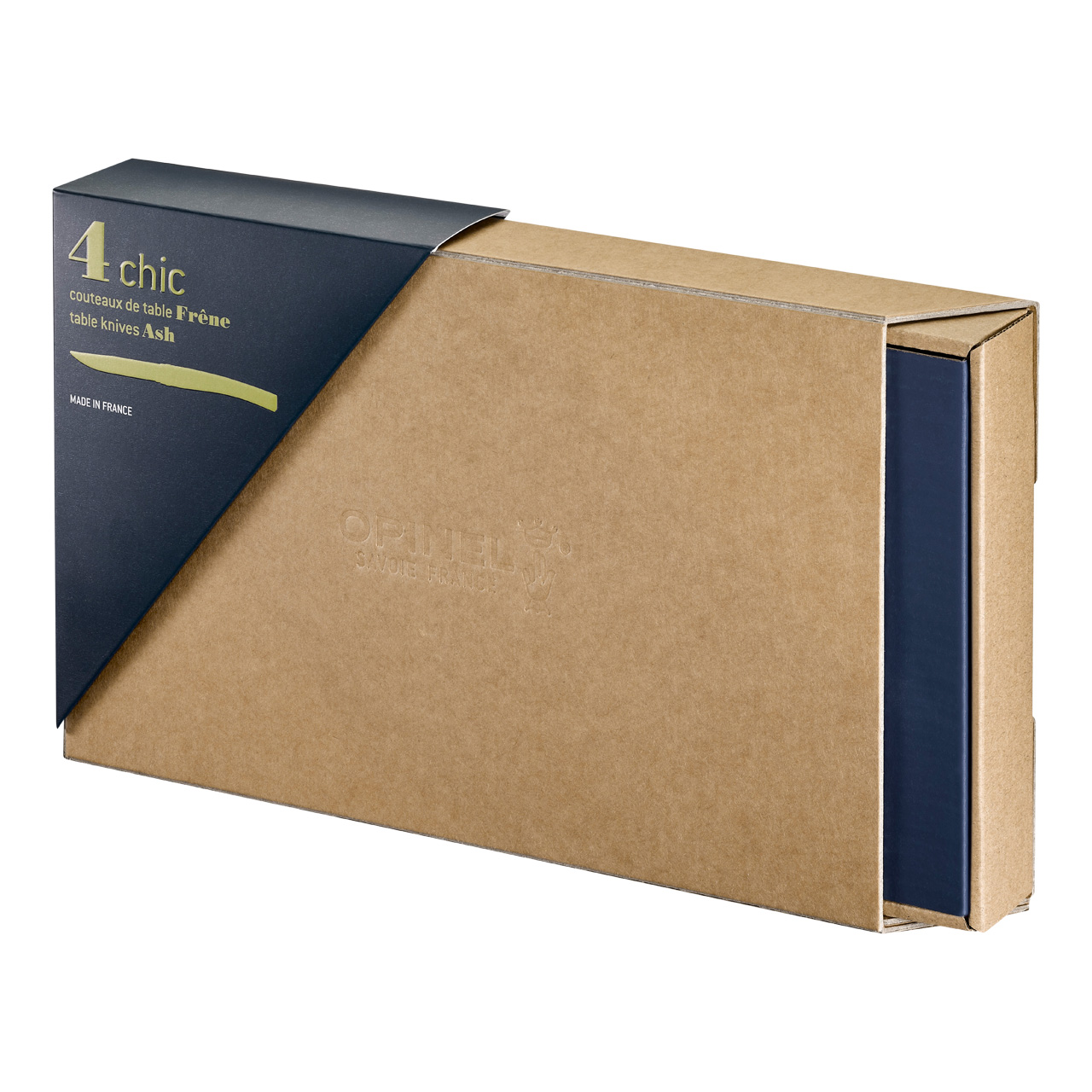Das vielseitig einsetzbare Eschenholz findet nun auch wieder Einzug bei Opinel in Form von Griffen für die Serie Table Chic II. In Kombination mit einer Klinge aus rostfreiem Edelstahl ist dieses Tafelmesser nicht nur zuverlässig, sondern auch attraktiv im Design. Die schlanke, der Slim Line Kollektion ähnelnde Form, liegt beim Schneiden sicher in der Hand. Die Lieferung von 4 Messern pro Set erfolgt in einer Geschenkbox.