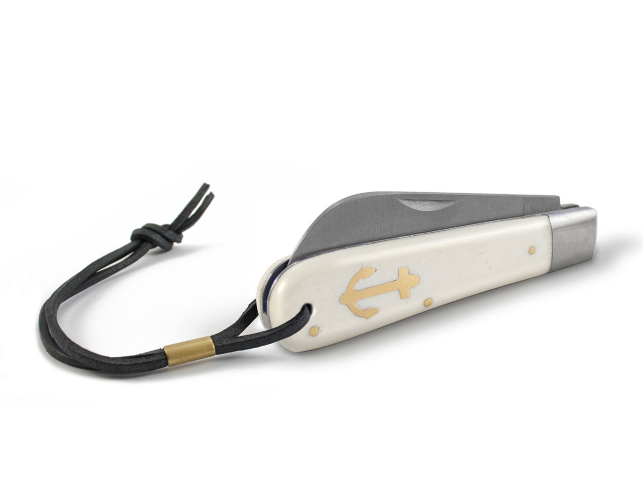 Funktionalität und schlichte Schönheit, das sind die Attribute, die diesen Klassiker aus dem Hause Otter auszeichnen. Das große Anker-Messer ist ein echter Blickfang. Der in den Knochengriff eingelassene Messinganker und die gebläute Klinge aus nicht rostfreiem C75 verleihen diesem Messer ein ganz besonderes Flair. Am Ende des Griffes befindet sich ein Loch, zum Durchziehen einer Kordel.