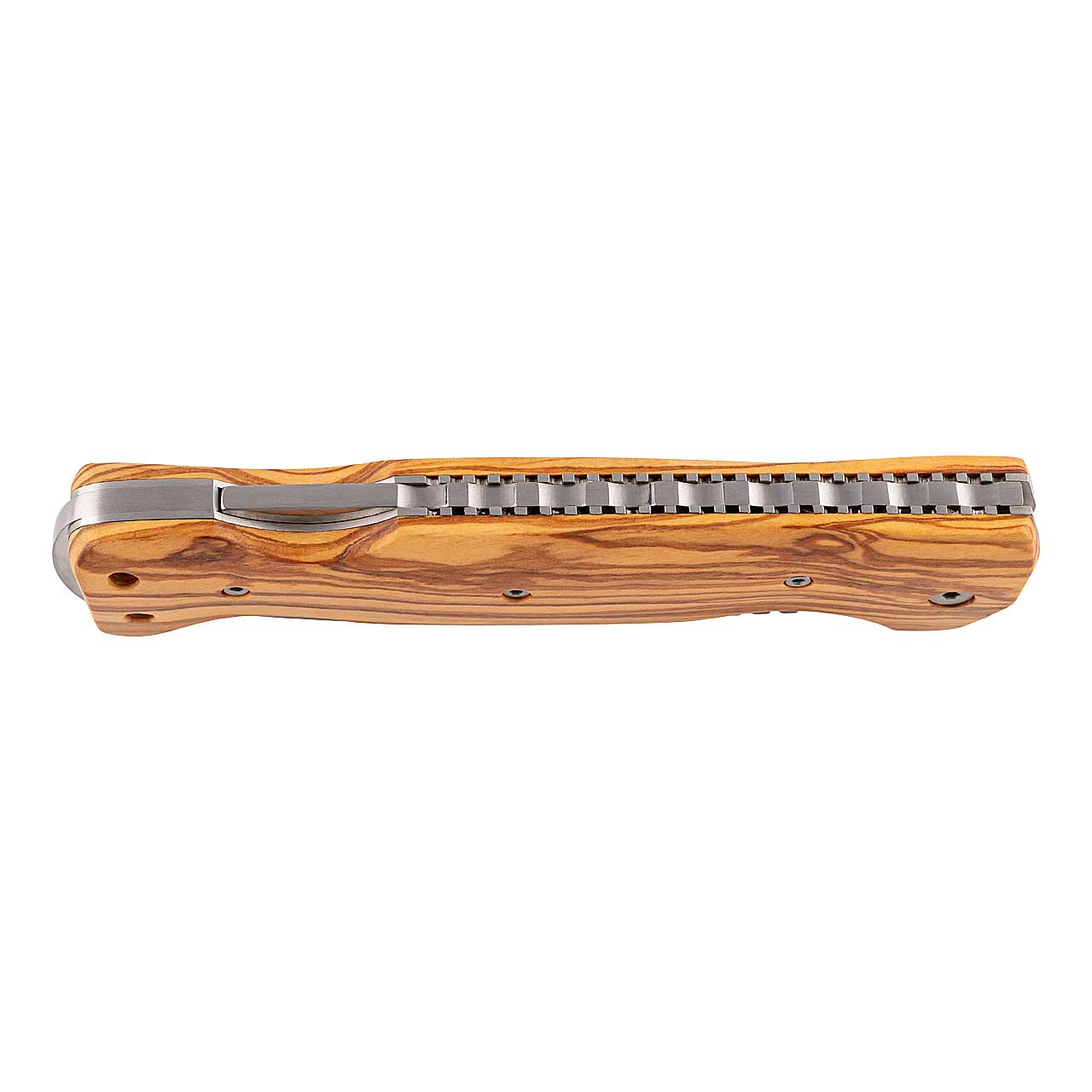 Mit dem BOXER OLIVE erweitert Puma das Taschenmessersortiment unter dem IP Label. Die Drop Point Klinge aus rostfreiem 12C27 Stahl ist mit einer praktischen Daumenauflage und einem Nagelhau ausgestattet. Ein Back Lock Mechanismus arretiert die Klinge zuverlässig. Verzierte Edelstahlplatinen und sauber angepasste Olivenholzschalen bilden den ergonomischen Griff, der mit einer nützlichen Fangriemenöse versehen ist.