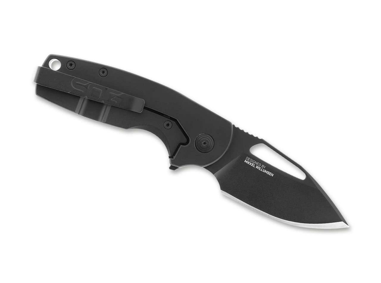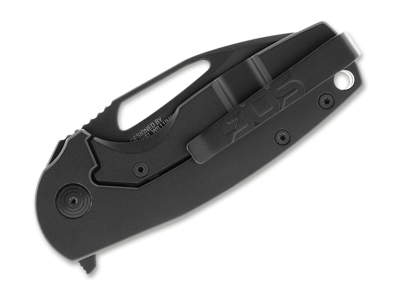 SOG Gründer Spencer Frazier und Messerdesigner Mikkel Willumsen haben ihre Kräfte gebündelt und das ausdrucksstarke SOG Stout FLK Blackout aus der Taufe gehoben. Das kraftvolle EDC Messer ist mit einer schwarz beschichteten Klinge aus CRYO D2 ausgestattet und öffnet wahlweise per Flipper oder Daumenöffnung. Der stabile Framelock hält die Klinge auch bei schwierigen Aufgaben an Ort und Stelle. Der wohlgeformte Griff aus schwarzem G10 liegt dabei ideal in der Hand und bietet mit dem Clip (Tip-up/r) und der Fangriemenöse flexible Befestigungsmöglichkeiten.