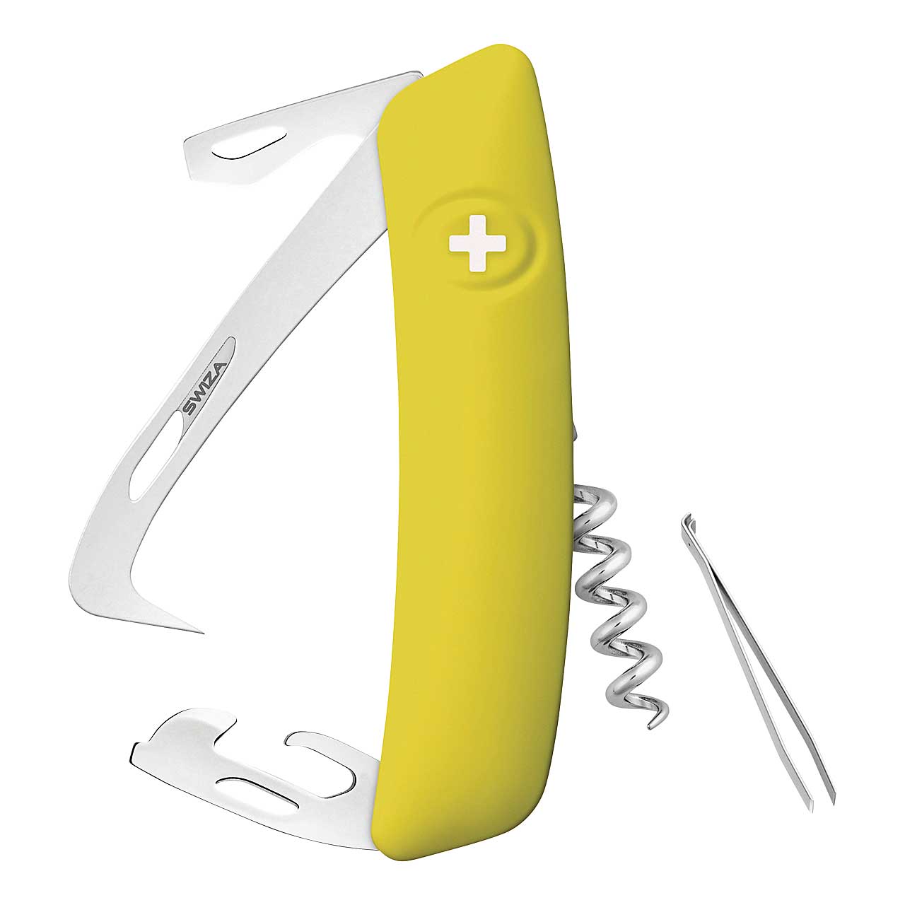 Das SWIZA Horse Tool HO03 ist ein praktischer Begleiter für alle Reitenthusiasten. Anstelle einer Klinge verfügt dieses Tool über einen ausklappbaren Hufkratzer, welcher in geöffneter Position zuverlässig arretiert. Durch Druck auf das Schweizer Kreuz - Markenzeichen von SWIZA - wird die Arretierung spielend leicht gelöst. Das HO03 besitzt außerdem die Kombi-Werkzeuge Flaschenöffner/Schlitzschraubenzieher Nummer 3 sowie Dosenöffner/Schlitzschraubendreher Nummer 1, eine Pinzette mit abgeschrägter Spitze und einen Sommelier-Korkenzieher mit 5 Windungen. Das Heft mit seiner grün-gelben Anti-Rutsch-Oberfläche liegt angenehm in der Hand. HO03 - 8 Funktionen: Hufkratzer mit Sicherheitsblockierung, Flaschenöffner, Schraubendreher Nr. 3, Drahtbieger, Dosenöffner, Schraubendreher Nr. 1, Sommelier-Korkenzieher, Pinzette.
