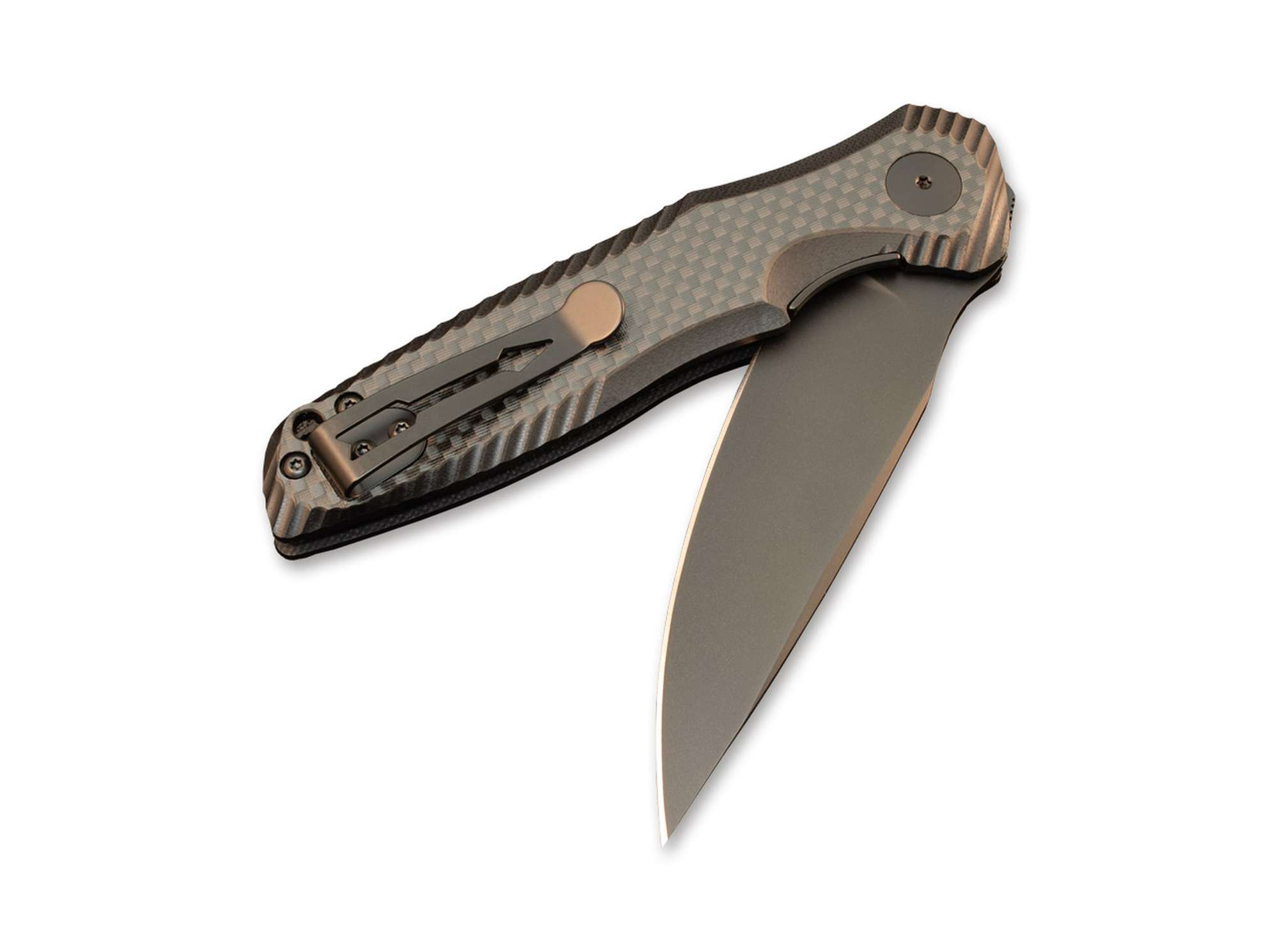 Der Poros Flipper wurde von Curtis Iovito als robuster und vollwertiger EDC-Folder entworfen. Der hohe Schliff der schwarz beschichteten 154CM Klinge in Kombination mit dem scharfen Drop Point Design machen es zu einem zuverlässigen Begleiter für den Alltag. Dank IKBS-Kugellagerung erfolgt das Öffnen des Messers nahezu schwerelos, während der Liner Lock die Klinge zuverlässig hält. Die markanten Griffschalen aus schwarzem G10 sind nicht nur schön, sondern sorgen auch für einen sicheren Halt.