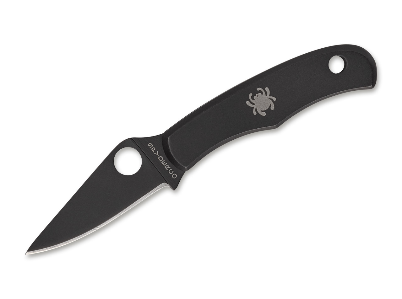 Der kleinste Folder von Spyderco in einer komplett schwarzen Variante! Mit einer Gesamtlänge von gerade einmal 75mm (geöffnet) und einer Klingenlänge von 33mm nicht nur ein außergewöhnlich kleines Messer, sondern auch ausgezeichnet als Anhänger für eine Halskette geeignet. Edelstahlgriff, Klingenstahl 3Cr13MoV. Slip-Joint d.h. die Klinge verriegelt nicht, sondern wird durch die Kraft der Rückenfeder offengehalten. Nur mit glatter Schneide erhältlich.