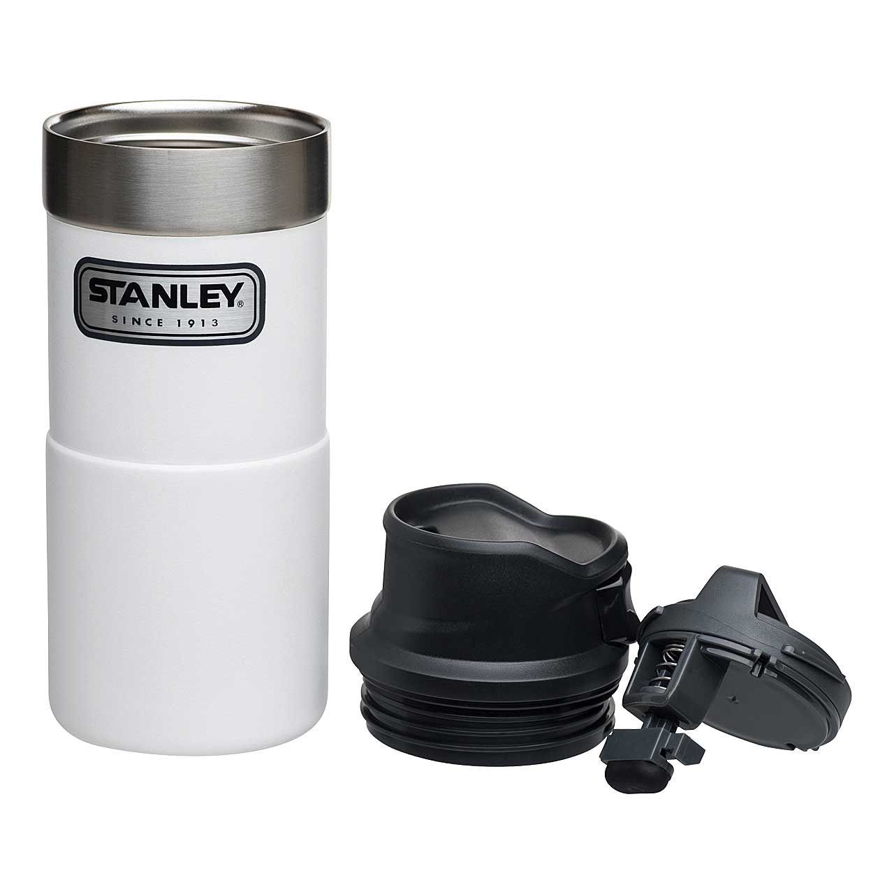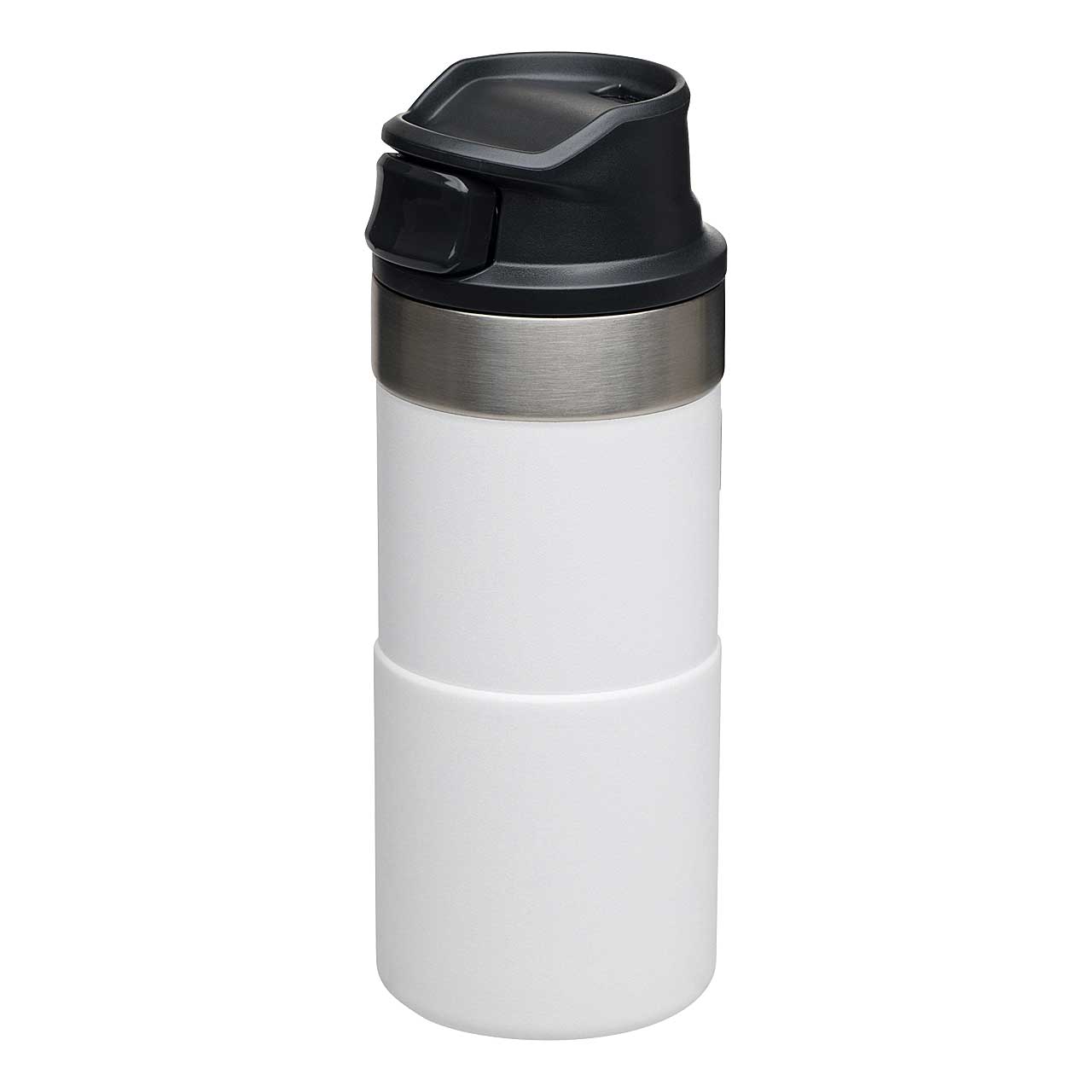 Mit dem Stanley CLASSIC TRIGGER-ACTION TRAVEL MUG in polarweiß führt Stanley eine neue Generation der Becher mit Einhandbedienung ein. Das Drücken der großen und sehr leichtgängigen Taste zum Aktivieren der Trinköffnung mit einer Hand macht Trinken - on the go - zum Vergnügen. Der Trinkbecher aus rostfreiem 18/8-Edelstahl mit Vakuumisolierung besitzt ein Fassungsvermögen von 354 ml und hält Getränke bis zu 5 Stunden heiß oder sogar 8 Stunden gekühlt. Der TRIGGER-ACTION TRAVEL MUG ist komplett spülmaschinenfest, auslaufsicher und passt in gängige PKW-Getränkehalterungen. BPA-frei.