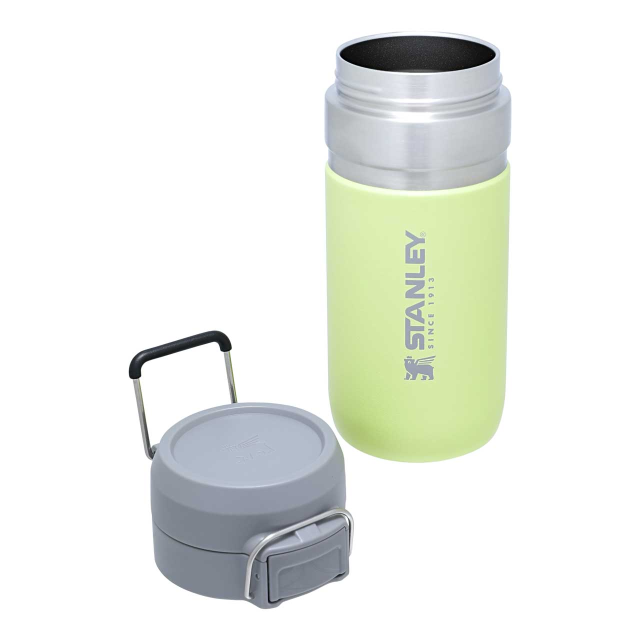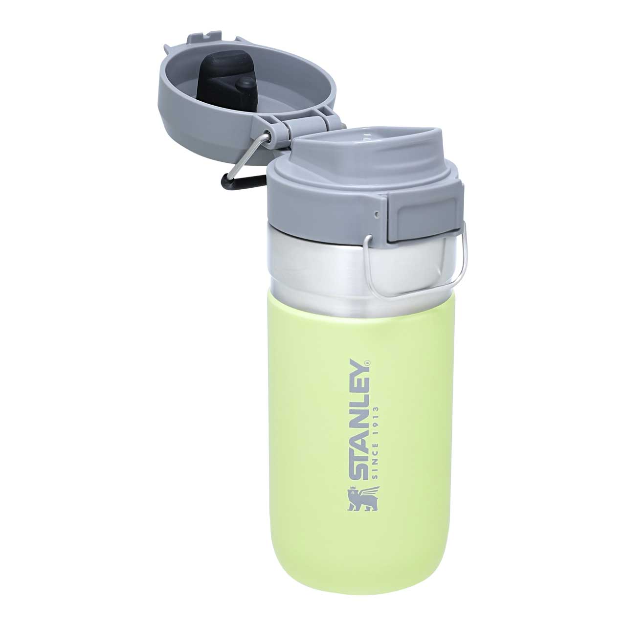 Ob für die Outdoor-Tour, den Sport oder einfach On The Road, die Stanley QUICK-FLIP WATER BOTTLE ist der ideale Begleiter gegen den Durst. Die auslaufsichere Flasche ist mit einem innovativen, zweistufigen Sicherheitsverschluss ausgestattet. Beim Transport wird der Verschluss gegen unbeabsichtigtes Öffnen von einem Edelstahlbügel fixiert. Wird dieser gelöst und der Push-Button Knopf gedrückt, flippt der Deckel federunterstützt auf. Die Trinkflasche aus rostfreiem 18/8-Edelstahl mit Vakuumisolierung besitzt ein Fassungsvermögen von 473 ml und hält Getränke bis zu 5 Stunden heiß oder 7 Stunden gekühlt. Die Flasche passt in gängige PKW-Getränkehalter und ist mit einem beweglichen Bügel zum Anhängen an den Rucksack oder Tragegriff ausgestattet. Alle Teile können in der Spülmaschine gereinigt werden. BPA-frei.