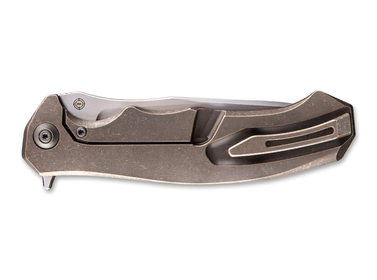 Der neuartig konzipierte Titangriff des 037 ist nicht klassisch verschraubt, sondern durch seinen neuartigen, besonders stabilen Aufbau bei gleichzeitig extrem geringem Gewicht gekennzeichnet. Die kugelgelagerte Klinge aus dem pulvermetallurgischen Böhler M390 öffnet per Flipper und wird per Framelock verriegelt. Die Hardware des Messers besteht ebenfalls komplett aus Titan. Ein außergewöhnliches Stück, das mit seiner Technik Sammler ebenso begeistert wie Nutzer.