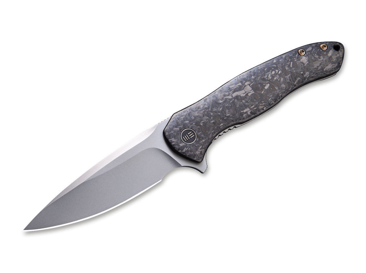 Das WE Knife Kitefin ist ein mittelgroßes, universell einsetzbares EDC Messer mit einer breiten Droppoint-Klinge aus S35VN, die eine großzügige Fingermulde für Detailschnitte beherbergt. Der Flipper sorgt für sanftes Öffnen der kugelgelagerten Klinge und dient zugleich als Fingerschutz. Ein solides Framelock hält die Klinge fest in ihrer Position und ermöglicht somit sicheres Arbeiten. Die Kitefin Messerserie ist in unterschiedlichen Grifffarben und –stilen erhältlich. Diese Version ist mit formschönen Griffschalen aus grauem Titan auf der Rückseite und geschredderter Kohlefaser auf der Vorderseite ausgestattet. Mit Fangriemenöse und umsetzbarem Deep-Carry-Clip (Tip-up).