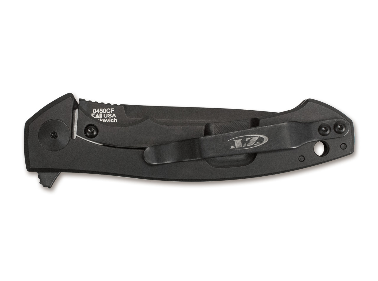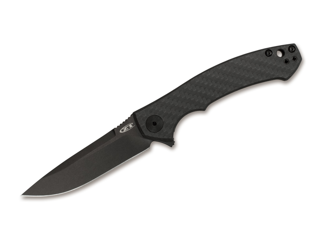 Das Zero Tolerance 0450CF ist ein schlankes Taschenmesser für den Alltag, das von Dmitry Sinkevich entworfen wurde. Die stromlinienförmige Form und das geringe Gewicht machen das 0450 zu einem idealen EDC. Es ist mit einer aufwendig geschliffenen Klinge aus pulvermetallurgischem CPM-S-35VN ausgestattet, die mit einer robusten DLC-Beschichtung versehen ist. Sie ist kugelgelagert und wird leichtgängig per Flipper geöffnet. Ein robuster Framelock übernimmt die Verriegelung. Die vordere Griffschale wird aus leichtgewichtiger Kohlefaser gefertigt. Grüne Spacer setzenden einen kleinen aber auffälligen farblichen Akzent. Mit Fangriemenöse und umsetzbarem Clip (Tip-up/l-r).